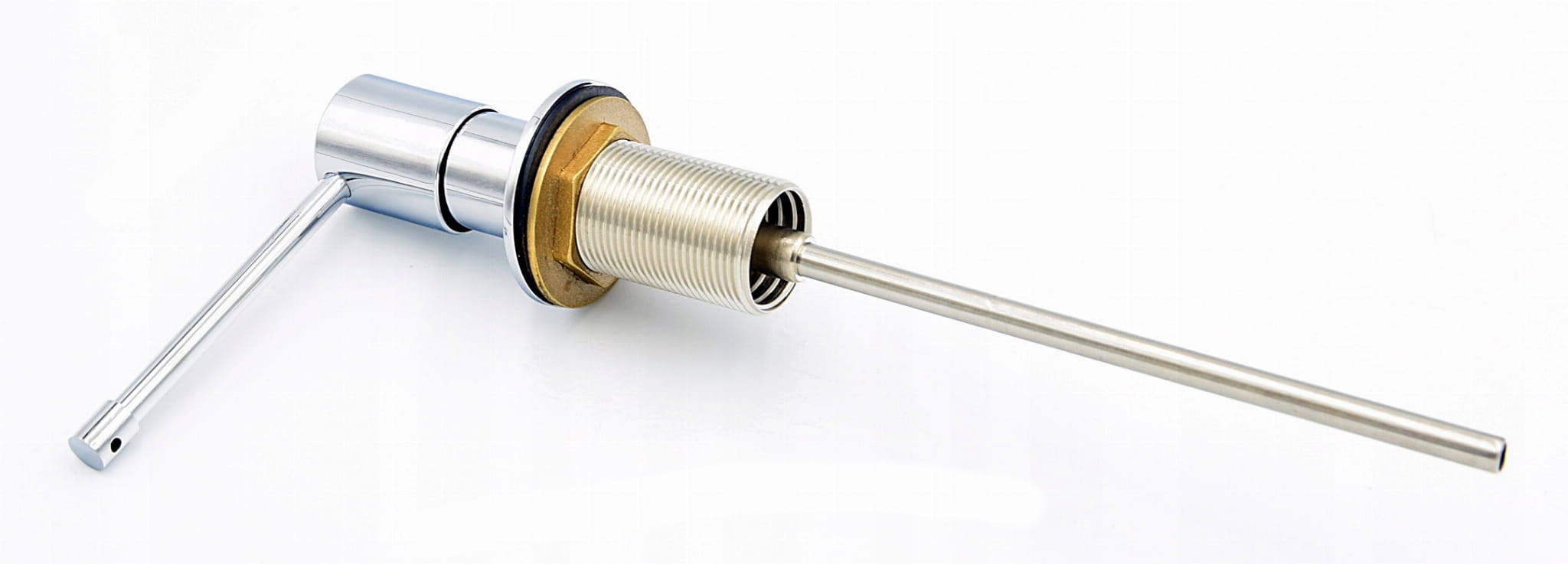 Dozownik lux do zlewozmywaka wykonany z mosiądzu i stali nierdzewnej, pojemnik z tworzywa PCV, w kolorze CHROM. Napełniany od góry. Obrotowa końcówka 360'. W komplecie otrzymasz wszystko, co potrzebne do montażu.