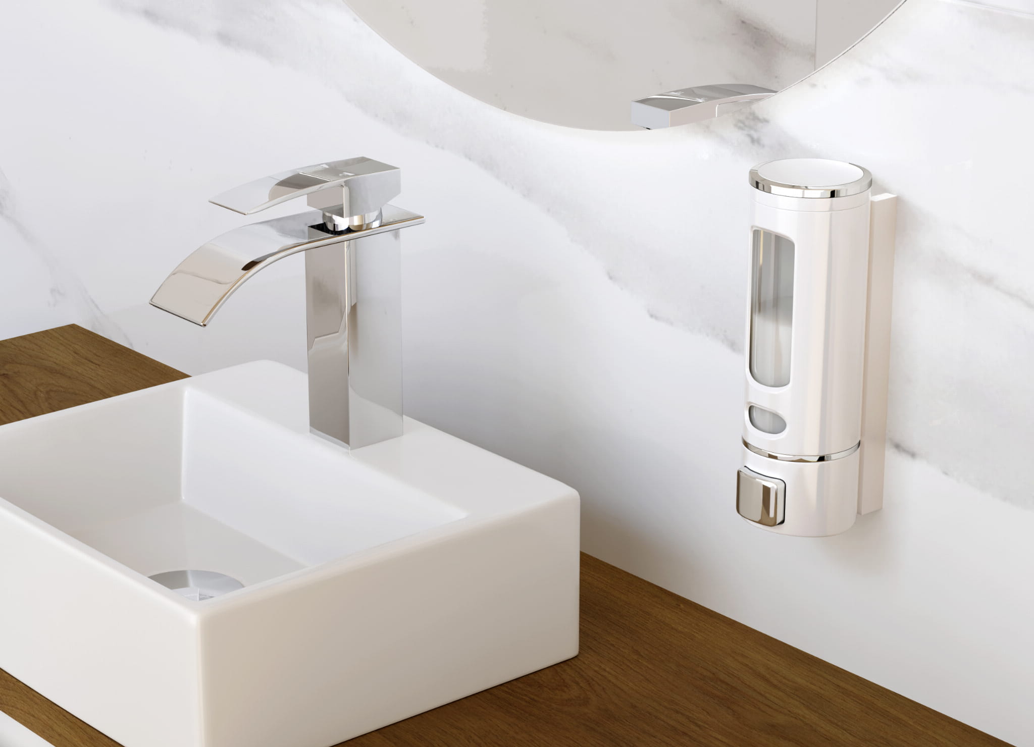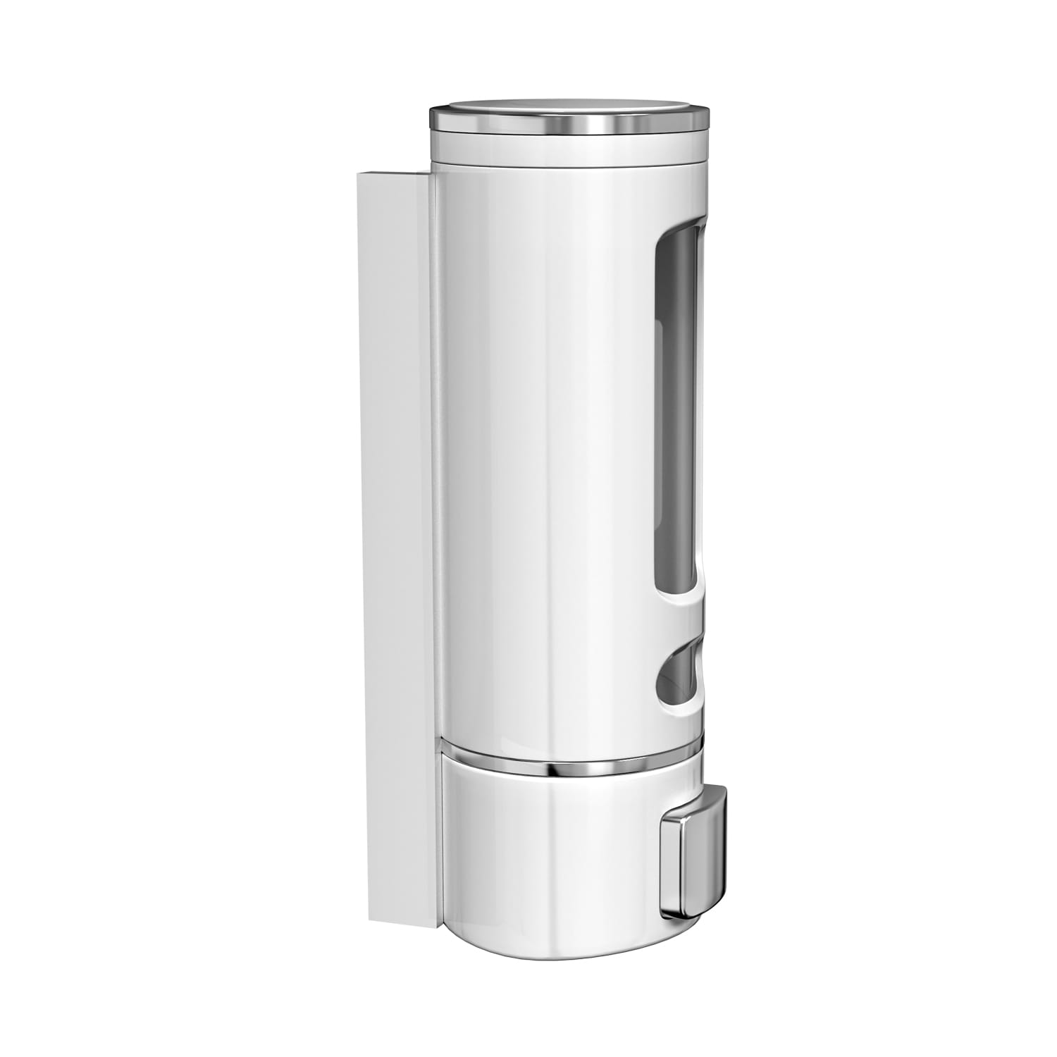 Dozownik ścienny do mydła, szamponu, czy innych płynów, wykonany z tworzywa PCV, elementy metalizowane pokryte kilkukrotnie warstwą chromu. Napełniany od góry. Łatwy montaż naścienny. Komfortowe użytkowanie oraz konserwacja. Ponadczasowa stylistyka oraz trwałość materiałów. Dzięki precyzyjnemu systemowi odmierzania, płyn nie skapuje. Nowoczesny design, który znajdzie zastosowanie nie tylko przy umywalce, również pod prysznicem lub obok zlewozmywaka, jako zbiornik na szampon, płyn lub żel pod prysznic. Produkt eliminuje siedlisko bakterii, na które narażone są klasyczne mydła w kostce.