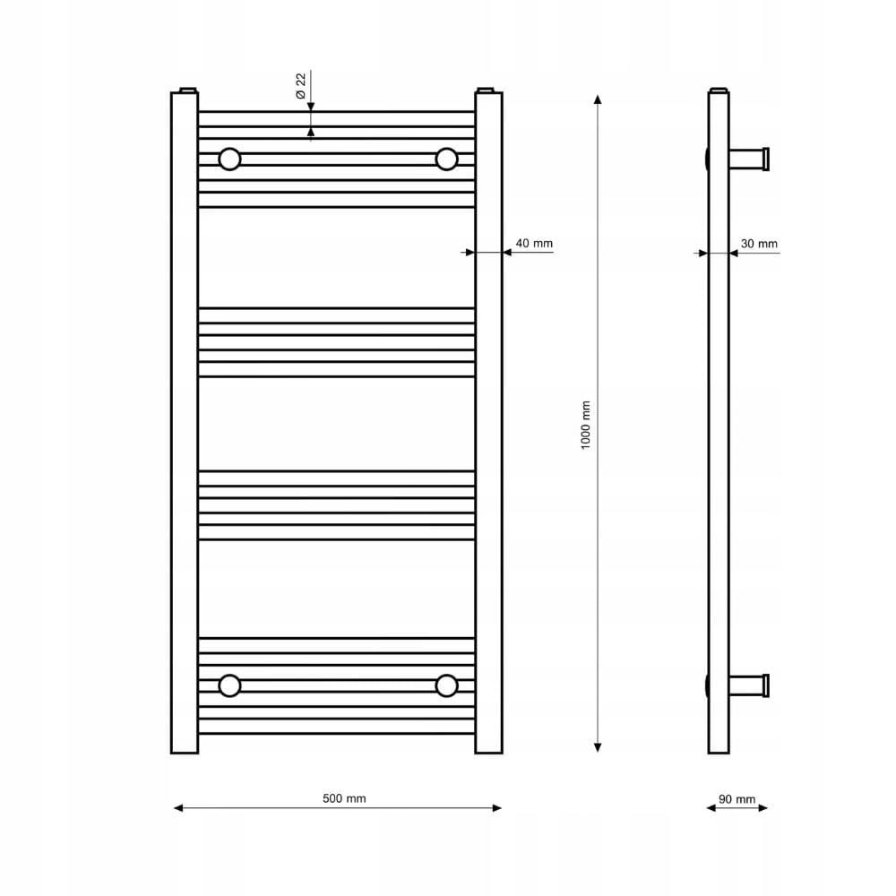 Grzejnik łazienkowy biały drabinkowy 50 x 100 cm montaż 180 Breno