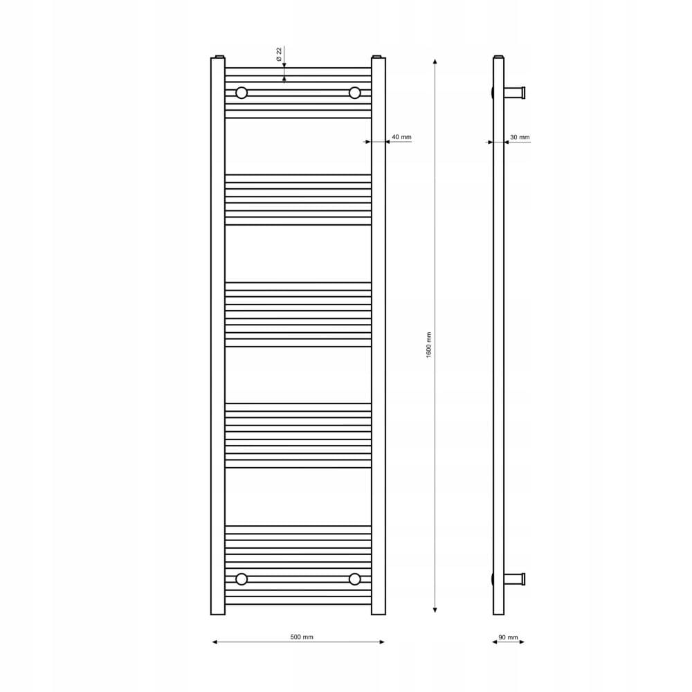 Grzejnik łazienkowy biały drabinkowy 50 x 160 cm montaż 180 Breno