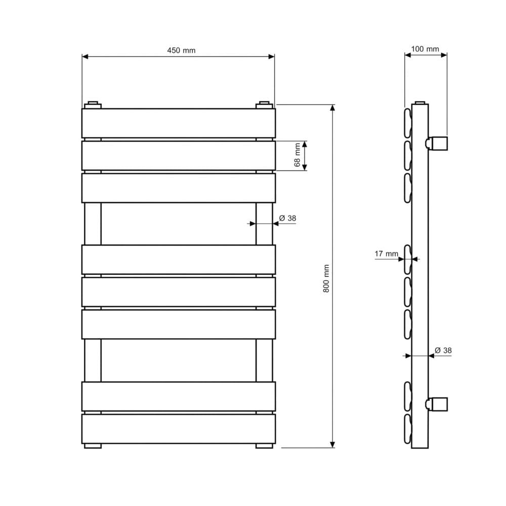 ● Łatwy montaż – grzejnik wyposażony jest w boczne uchwyty oraz standardowe podłączenia o średnicy 38 mm, co ułatwia instalację i podłączenie do instalacji grzewczej.