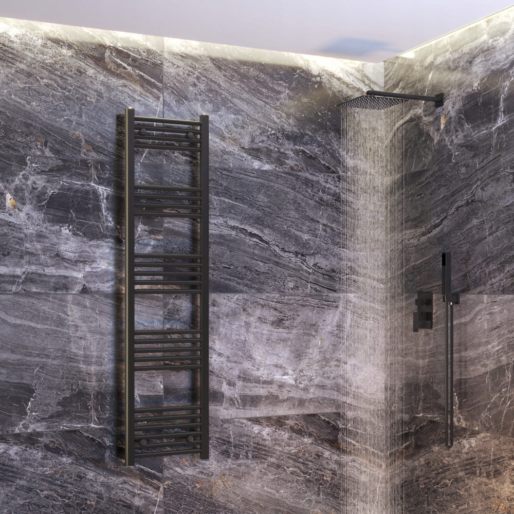Grzejnik łazienkowy czarny drabinkowy 40 x 160 cm montaż 180 Breno