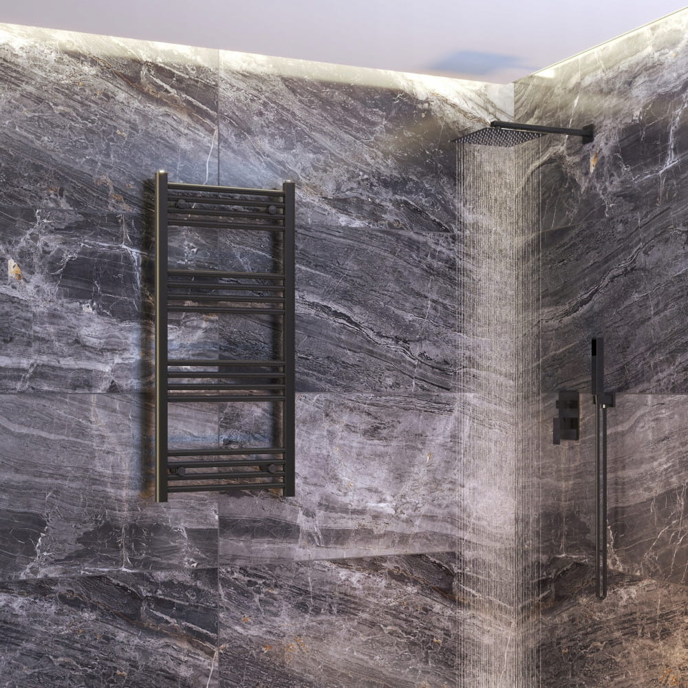Grzejnik łazienkowy czarny drabinkowy 50 x 110 cm montaż 180 Breno