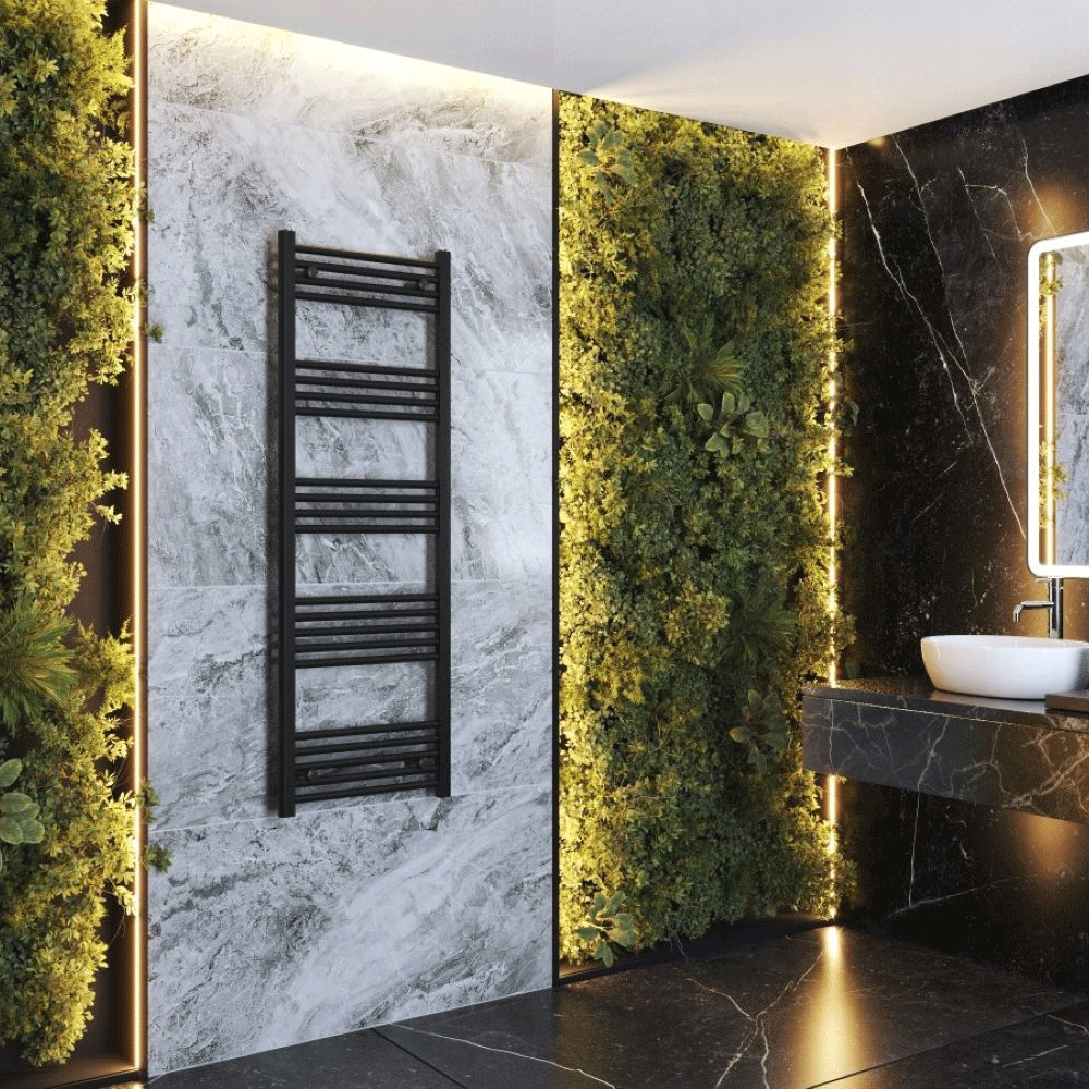Grzejnik łazienkowy czarny drabinkowy 50 x 150 cm montaż 180 Breno