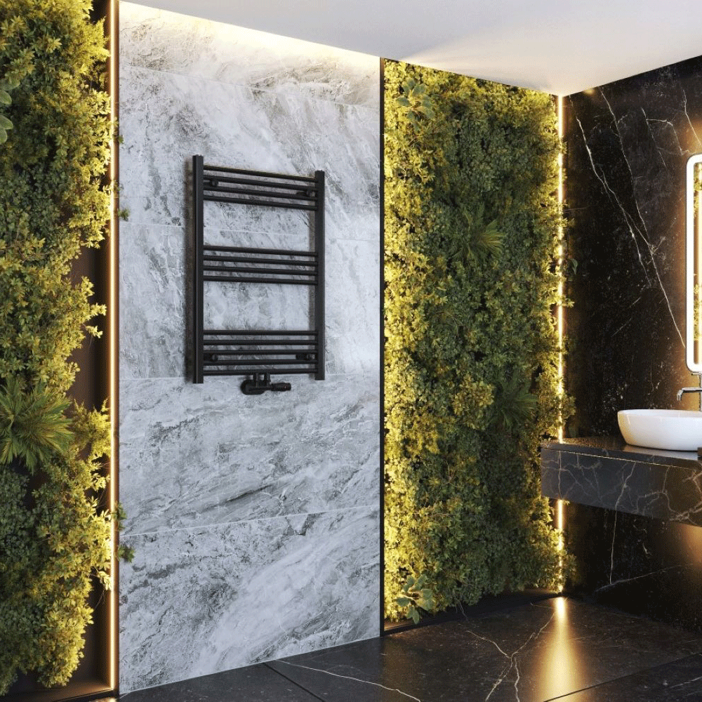 Funkcjonalny, czarny grzejnik łazienkowy w stylu drabinkowym to idealne rozwiązanie do nowoczesnych wnętrz. Model Raven zapewnia wydajne ogrzewanie i trwałość na lata. Jego minimalistyczny design dodaje wnętrzu charakteru i elegancji. Grzejnik jest przystosowany zarówno do podłączenia centralnego ogrzewania, jak i opcjonalnej grzałki elektrycznej, co pozwala na jego używanie przez cały rok.