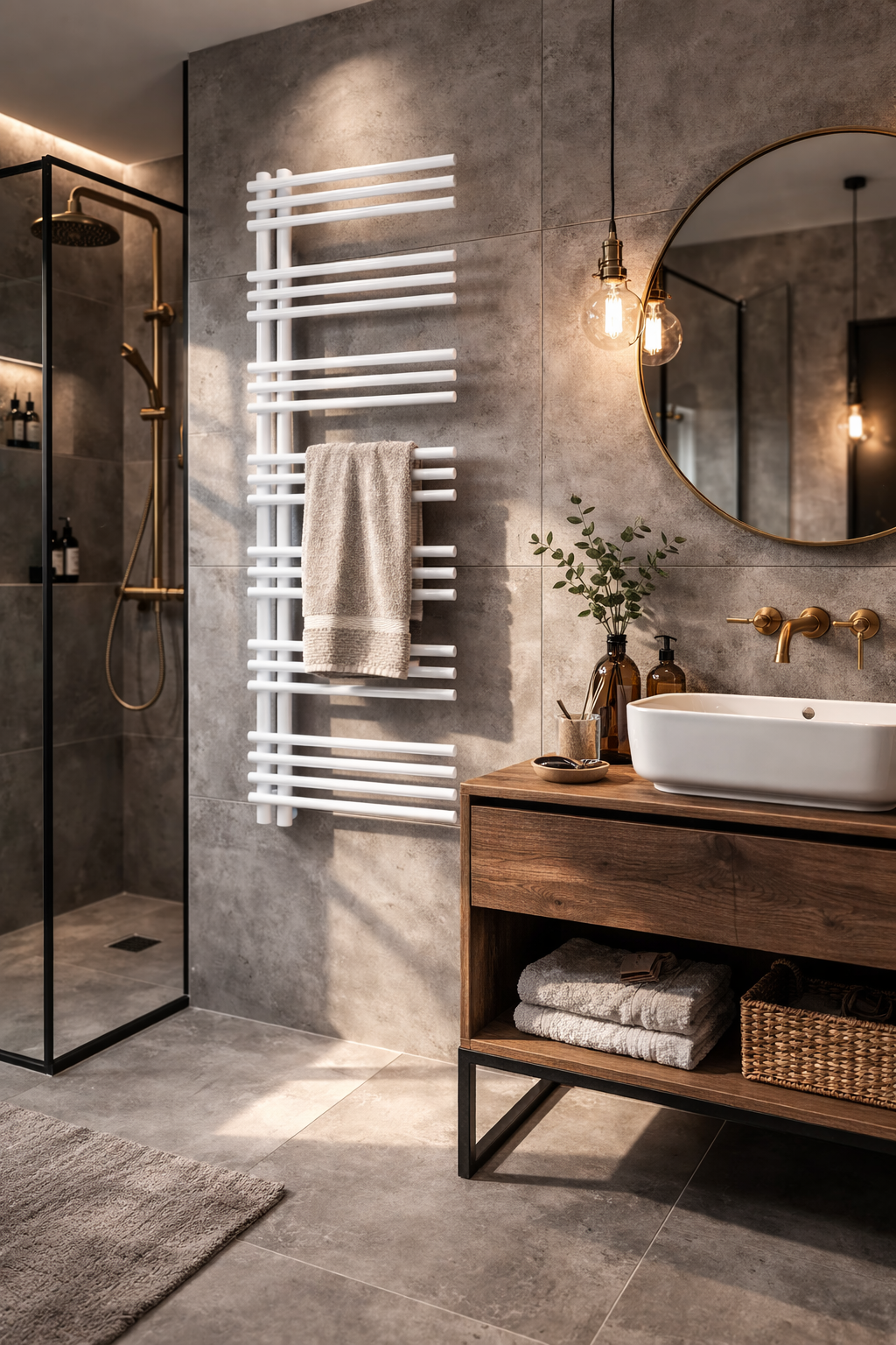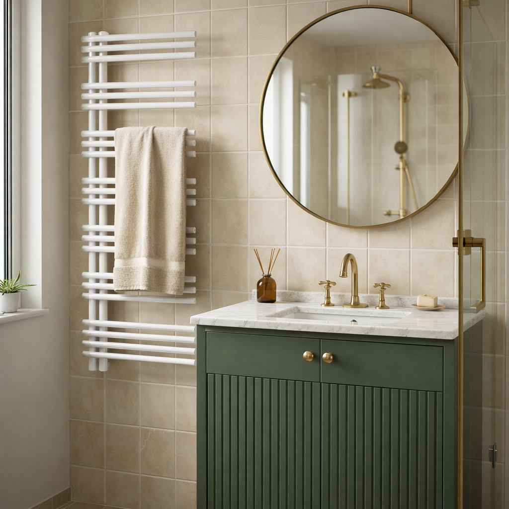 Grzejnik łazienkowy LOMEA to funkcjonalne i eleganckie rozwiązanie, które zapewnia skuteczne ogrzewanie łazienki oraz wygodne miejsce do suszenia ręczników i tekstyliów.