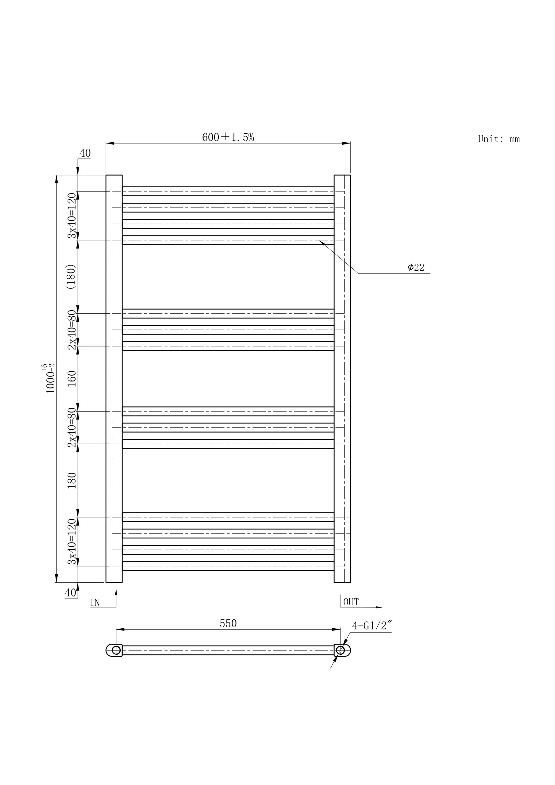 | Przyłącza | 2x G 1/2″ na środku / 4x G 1/2″ na dole po prawej lub lewej stronie grzejnika |