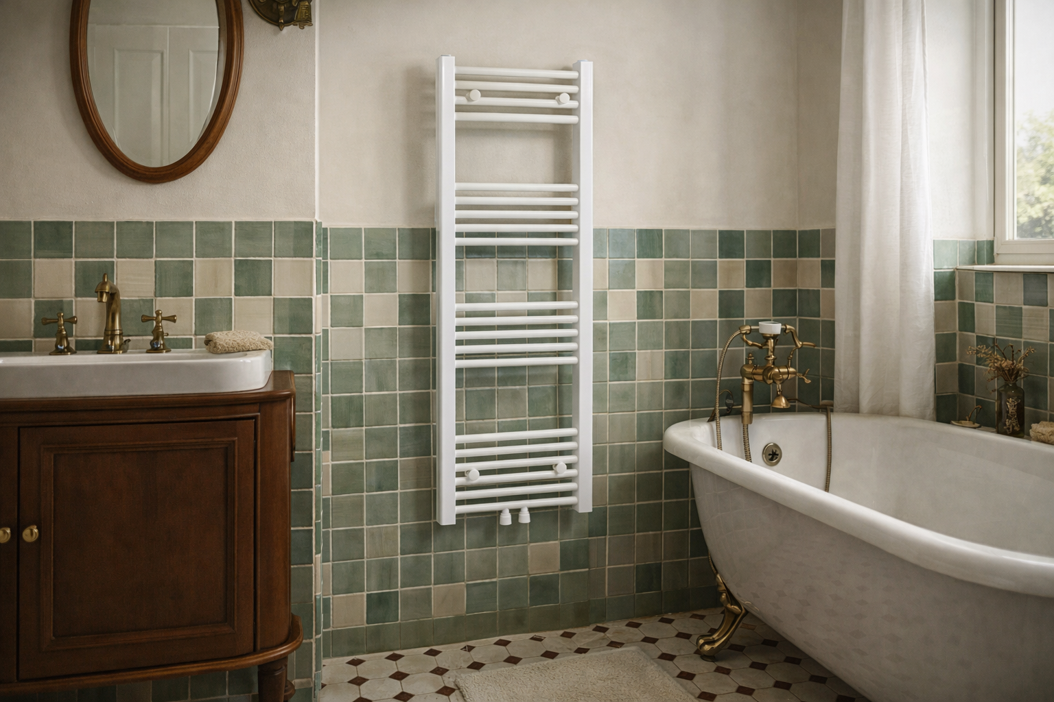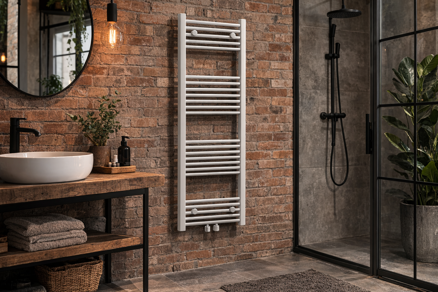 Smukła drabinkowa konstrukcja pozwala skutecznie ogrzać pomieszczenie, a jednocześnie zapewnia wygodne miejsce do suszenia ręczników oraz tekstyliów łazienkowych. Kompaktowy rozmiar 110 × 40 cm sprawia, że model doskonale sprawdzi się również w mniejszych łazienkach, gdzie liczy się każdy centymetr przestrzeni. Grzejnik wykonany został z trwałej stali odpornej na wilgoć i korozję, co gwarantuje jego niezawodność oraz estetyczny wygląd przez długi czas użytkowania. Białe wykończenie podkreśla nowoczesny charakter wnętrza i doskonale komponuje się z aranżacjami w stylu loftowym, industrialnym oraz minimalistycznym. Model przeznaczony jest do pracy w systemie centralnego ogrzewania, a jego konstrukcja umożliwia również zastosowanie grzałki elektrycznej, dzięki czemu z grzejnika można korzystać przez cały rok.