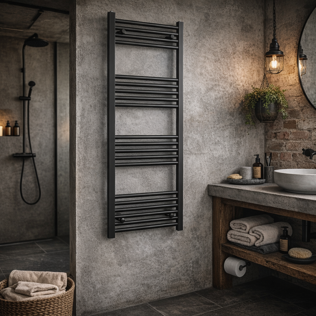 Smukła drabinkowa konstrukcja pozwala skutecznie ogrzać pomieszczenie, a jednocześnie zapewnia wygodne miejsce do suszenia ręczników oraz tekstyliów łazienkowych. Kompaktowy rozmiar 130 × 50 cm sprawia, że model doskonale sprawdzi się również w mniejszych łazienkach, gdzie liczy się każdy centymetr przestrzeni. Grzejnik wykonany został z trwałej stali odpornej na wilgoć i korozję, co gwarantuje jego niezawodność oraz estetyczny wygląd przez długi czas użytkowania. Czarne wykończenie podkreśla nowoczesny charakter wnętrza i doskonale komponuje się z aranżacjami w stylu loftowym, industrialnym oraz minimalistycznym. Model przeznaczony jest do pracy w systemie centralnego ogrzewania, a jego konstrukcja umożliwia również zastosowanie grzałki elektrycznej, dzięki czemu z grzejnika można korzystać przez cały rok.