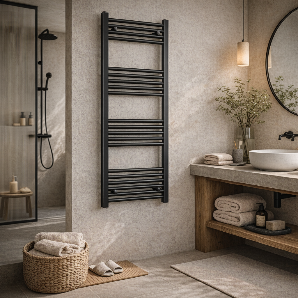 Grzejnik łazienkowy BASER to funkcjonalne i stylowe rozwiązanie zaprojektowane z myślą o nowoczesnych łazienkach.