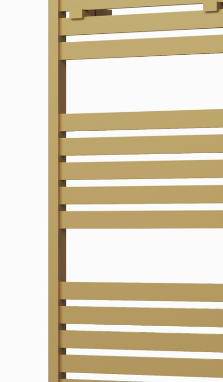 Jego prosta, geometryczna forma sprawia, że doskonale wpisuje się zarówno w minimalistyczne, jak i klasyczne aranżacje wnętrz, stanowiąc estetyczne i praktyczne wyposażenie łazienki. Drabinkowa konstrukcja zapewnia efektywne ogrzewanie pomieszczenia, a jednocześnie umożliwia wygodne suszenie ręczników oraz tekstyliów łazienkowych, zwiększając komfort codziennego użytkowania. Model wykonany został z trwałych materiałów odpornych na wilgoć, co gwarantuje długą żywotność oraz estetyczny wygląd przez wiele lat. Złote wykończenie nadaje wnętrzu lekkości i pozwala łatwo dopasować grzejnik do różnych stylów aranżacyjnych.