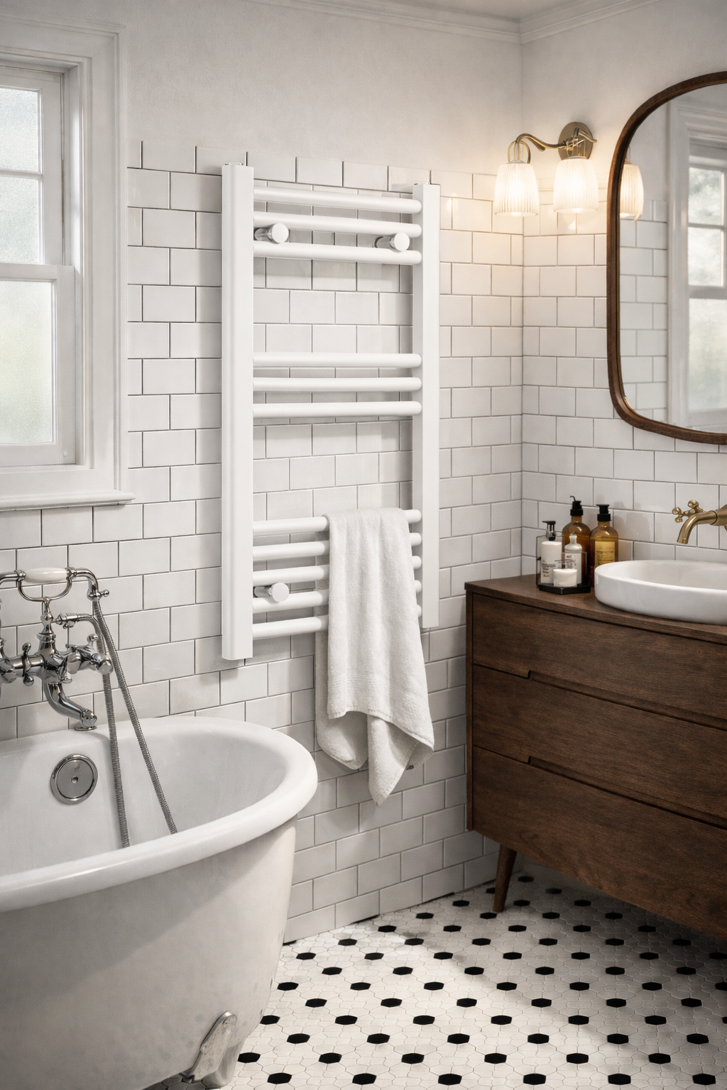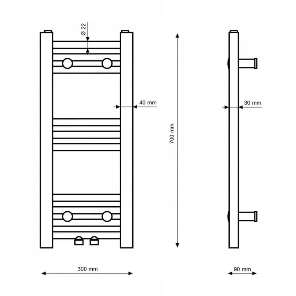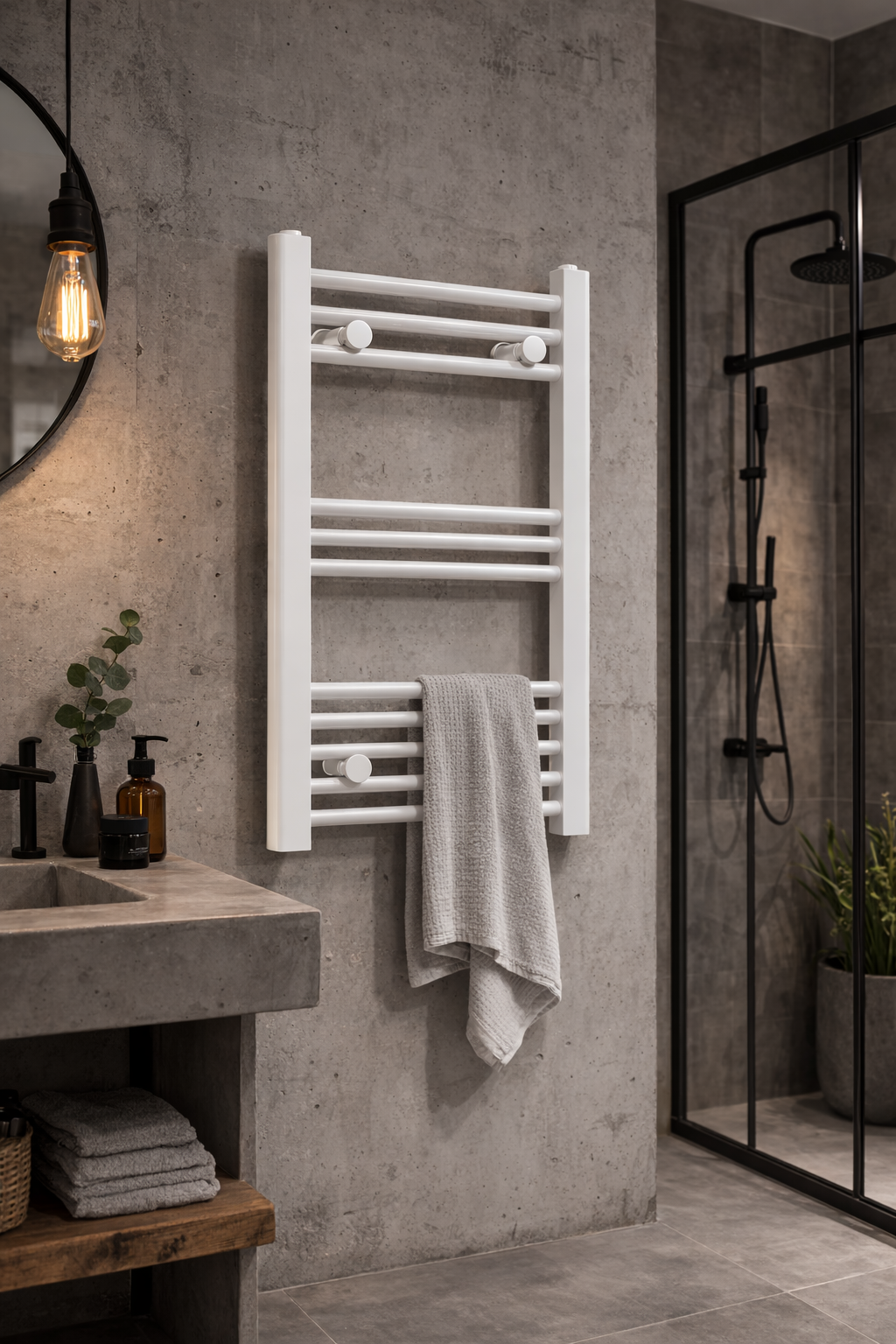 Smukła drabinkowa konstrukcja pozwala skutecznie ogrzać pomieszczenie, a jednocześnie zapewnia wygodne miejsce do suszenia ręczników oraz tekstyliów łazienkowych. Kompaktowy rozmiar 70 × 30 cm sprawia, że model doskonale sprawdzi się również w mniejszych łazienkach, gdzie liczy się każdy centymetr przestrzeni. Grzejnik wykonany został z trwałej stali odpornej na wilgoć i korozję, co gwarantuje jego niezawodność oraz estetyczny wygląd przez długi czas użytkowania. Białe wykończenie podkreśla nowoczesny charakter wnętrza i doskonale komponuje się z aranżacjami w stylu loftowym, industrialnym oraz minimalistycznym. Model przeznaczony jest do pracy w systemie centralnego ogrzewania, a jego konstrukcja umożliwia również zastosowanie grzałki elektrycznej, dzięki czemu z grzejnika można korzystać przez cały rok.