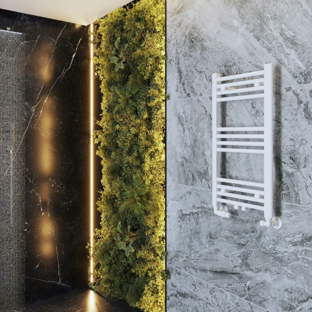 Smukła drabinkowa konstrukcja pozwala skutecznie ogrzać pomieszczenie, a jednocześnie zapewnia wygodne miejsce do suszenia ręczników oraz tekstyliów łazienkowych. Kompaktowy rozmiar 80 × 40 cm sprawia, że model doskonale sprawdzi się również w mniejszych łazienkach, gdzie liczy się każdy centymetr przestrzeni. Grzejnik wykonany został z trwałej stali odpornej na wilgoć i korozję, co gwarantuje jego niezawodność oraz estetyczny wygląd przez długi czas użytkowania. Białe wykończenie podkreśla nowoczesny charakter wnętrza i doskonale komponuje się z aranżacjami w stylu loftowym, industrialnym oraz minimalistycznym. Model przeznaczony jest do pracy w systemie centralnego ogrzewania, a jego konstrukcja umożliwia również zastosowanie grzałki elektrycznej, dzięki czemu z grzejnika można korzystać przez cały rok.