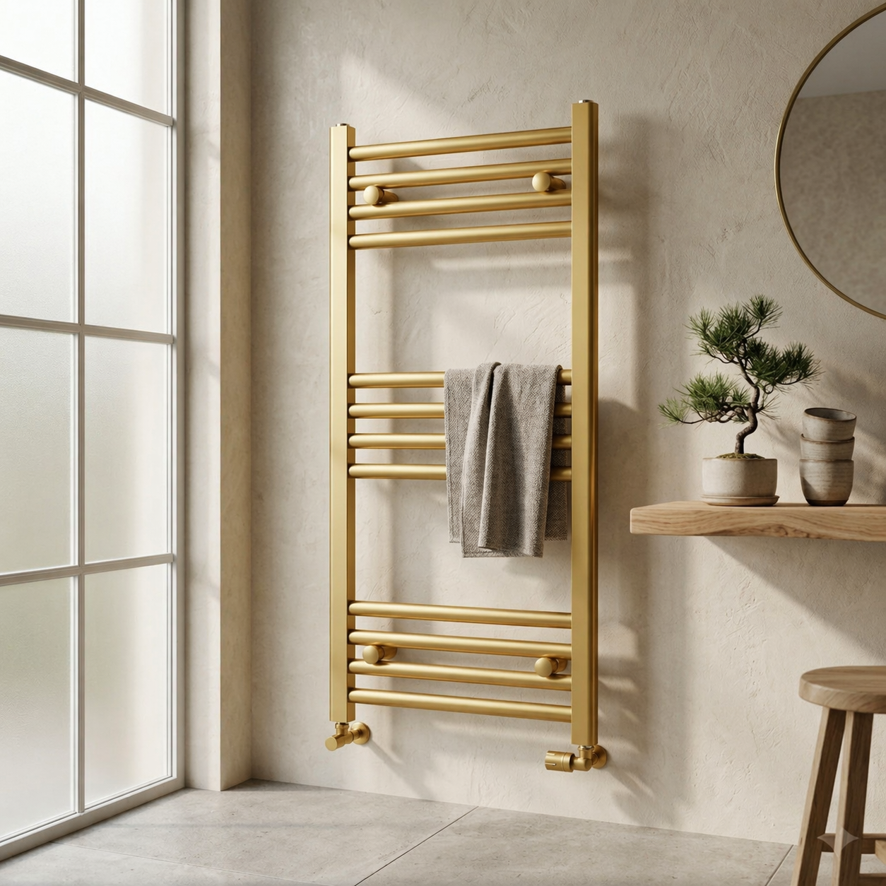 Grzejnik łazienkowy ścienny kaloryfer wodny drabinka 90x50 cm złoty BASER