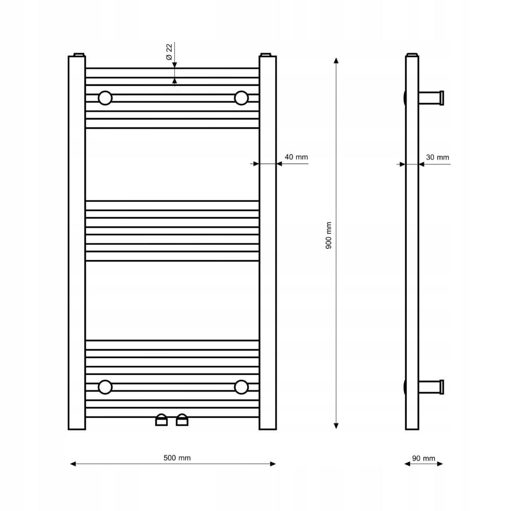 Model BASER to nowoczesny grzejnik łazienkowy typu drabinka o wymiarach 90x50 cm, który łączy minimalistyczny design, wysoką wydajność oraz praktyczne zastosowanie na co dzień, dzięki czemu doskonale sprawdzi się zarówno w mniejszych, jak i większych łazienkach.