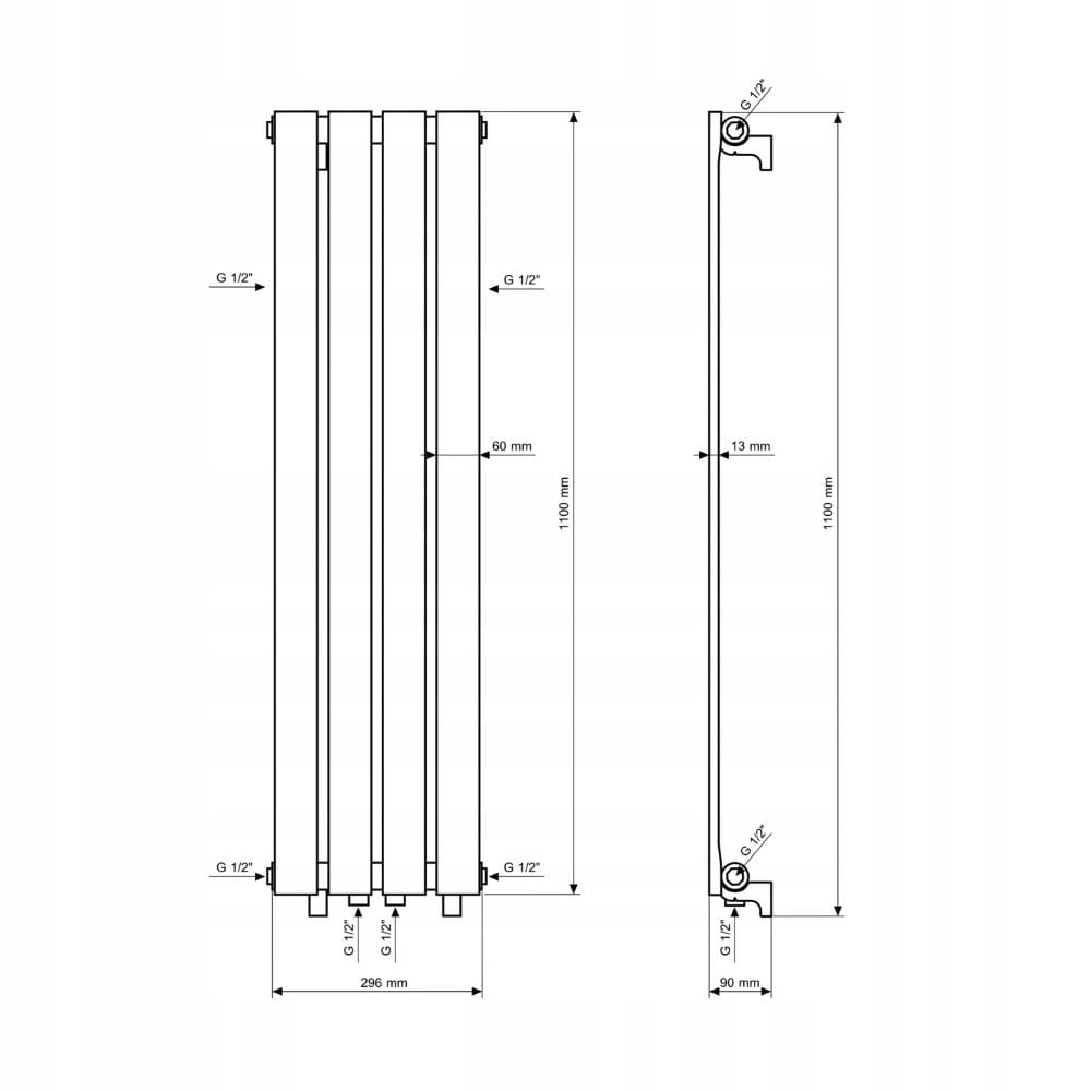 Grzejnik pionowy ozdobny Fero 1100 x 296 biały 368W