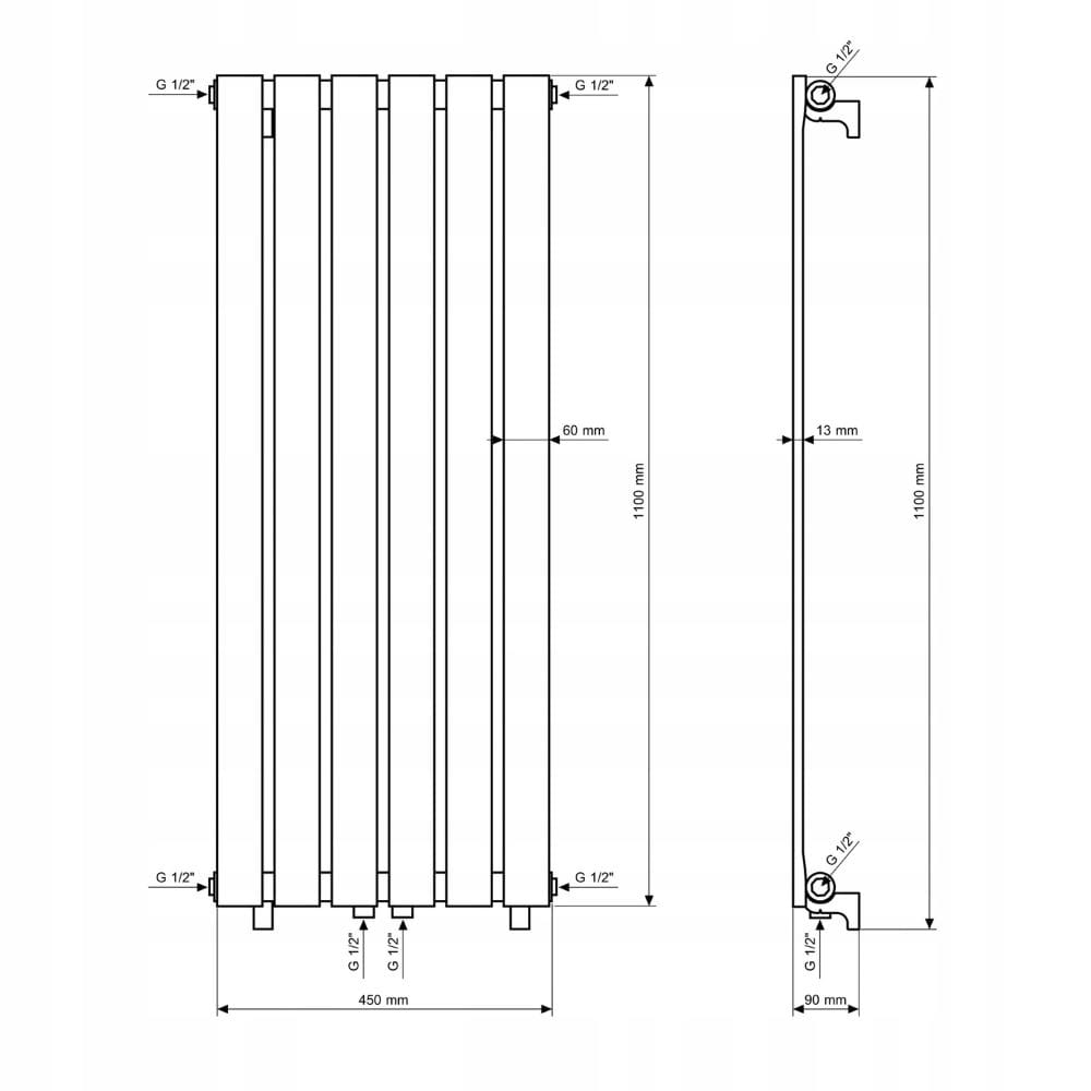 Grzejnik pionowy ozdobny Fero 1100 x 450 biały 553W