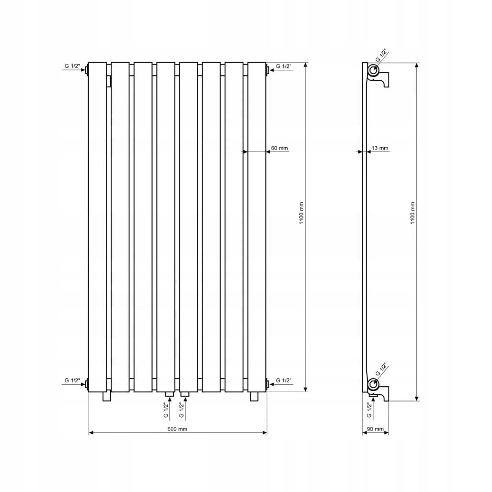 Grzejnik pionowy ozdobny Fero 1100 x 600 biały 368W