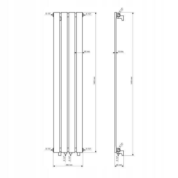 Grzejnik pionowy ozdobny Fero 1400 x 296 biały 458W