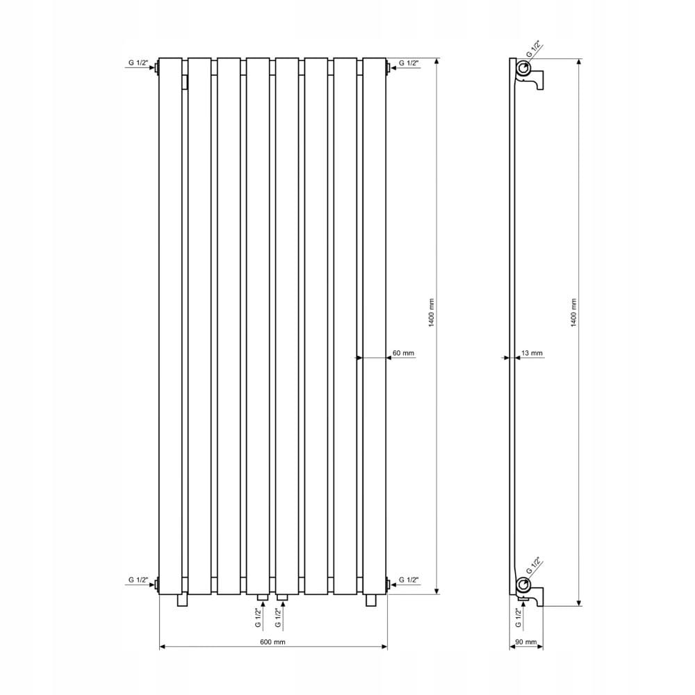 Grzejnik pionowy ozdobny Fero 1400 x 600 biały 916W
