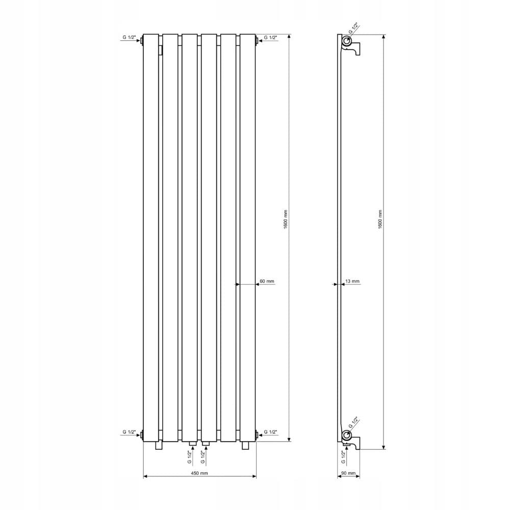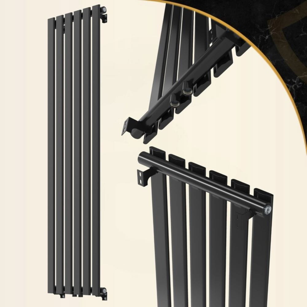 Grzejnik pionowy ozdobny Fero 1600 x 450 czarny 776W