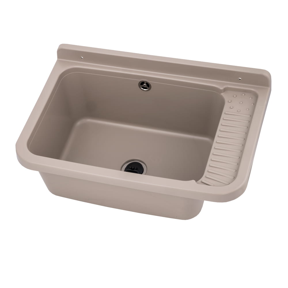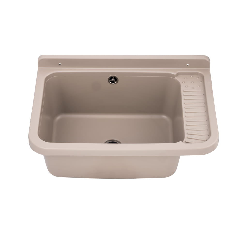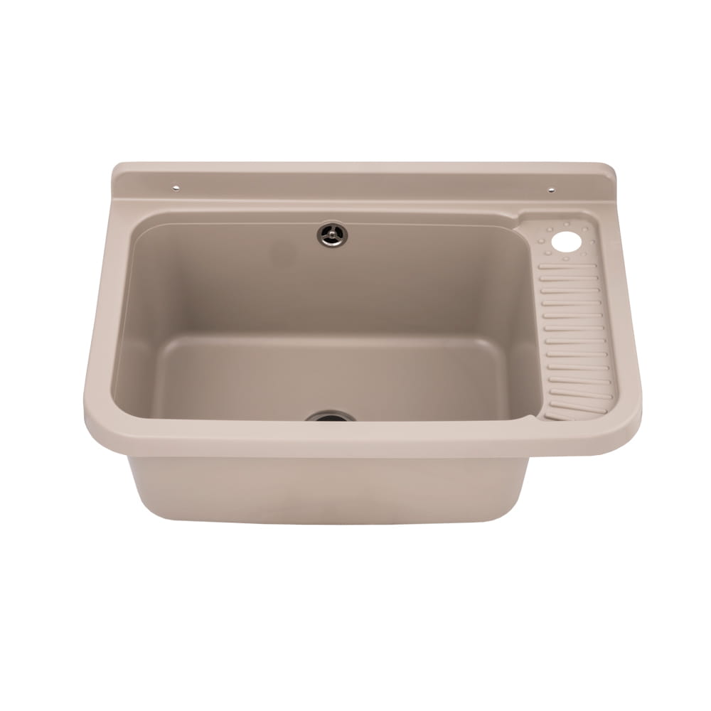 Dzięki beżowemu wykończeniu produkt zyskuje bardziej domowy charakter i doskonale prezentuje się nie tylko w garażu czy warsztacie, lecz także w pralni oraz pomieszczeniu gospodarczym. Komora została wykonana z wysokiej jakości polipropylenu, który zapewnia odporność na detergenty, wilgoć oraz podwyższone temperatury. Pojemna komora oraz solidna konstrukcja gwarantują wygodę podczas codziennych prac porządkowych, takich jak pranie ręczne, mycie narzędzi czy czyszczenie akcesoriów domowych. Materiał cechuje się wysoką odpornością na uderzenia i środki chemiczne, co pozwala na długotrwałe użytkowanie nawet w wymagających warunkach. Zlew umożliwia montaż z baterią ścienną lub stojącą, dzięki czemu można go łatwo dopasować do istniejącej instalacji wodnej. W zestawie znajduje się syfon, co sprawia, że produkt jest kompletny i gotowy do szybkiego montażu. Gładka powierzchnia sprawia, że komora jest łatwa w utrzymaniu czystości, a jej estetyczny wygląd pozostaje zachowany przez długi czas.