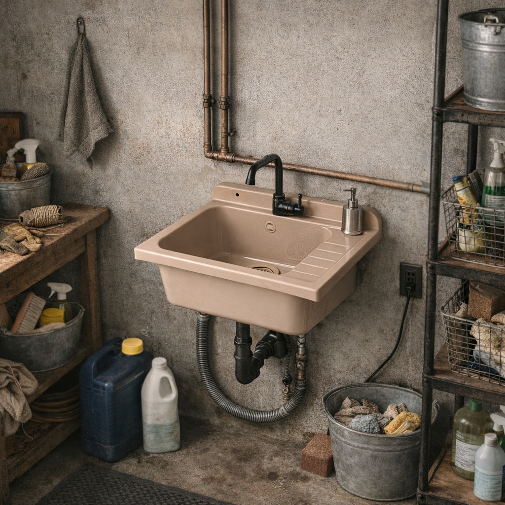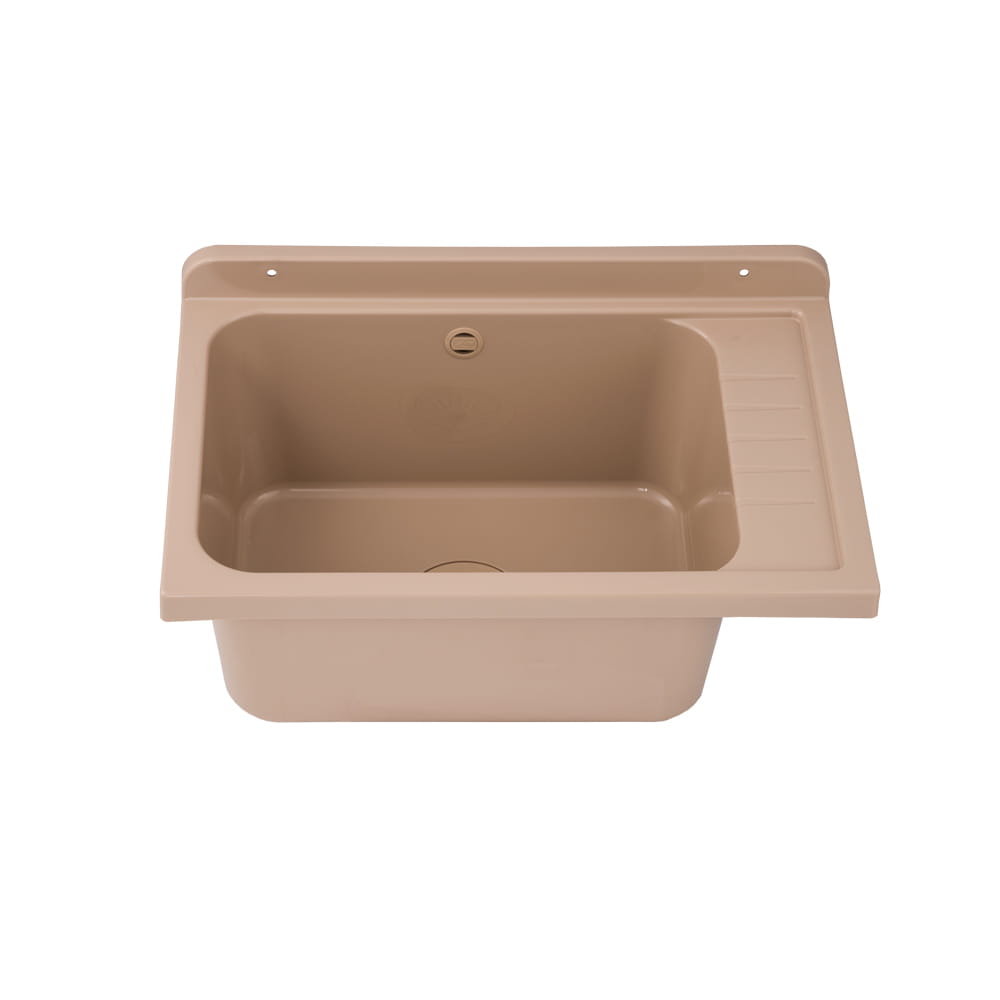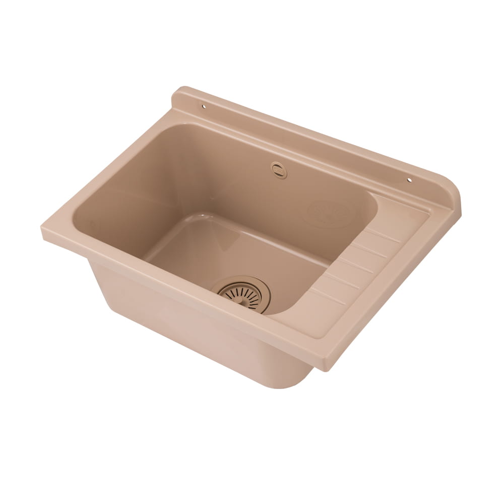 Dzięki beżowej kolorystyce produkt prezentuje się estetycznie i harmonijnie, dlatego świetnie sprawdzi się nie tylko w garażu czy warsztacie, lecz także w pralni i domowym pomieszczeniu gospodarczym. Komora została wykonana z wysokiej jakości polipropylenu, który zapewnia odporność na detergenty, wilgoć oraz działanie podwyższonych temperatur. Pojemna komora gwarantuje wygodę podczas codziennych prac porządkowych i technicznych, takich jak pranie ręczne, mycie narzędzi czy czyszczenie akcesoriów. Materiał cechuje się wysoką odpornością na uderzenia i środki chemiczne, co pozwala na długotrwałe użytkowanie nawet w wymagających warunkach. Zlew umożliwia montaż z baterią ścienną lub stojącą, co daje możliwość dopasowania do każdej instalacji wodnej. Produkt posiada syfon w zestawie, a jego elementy utrzymane są w spójnej kolorystyce, co podkreśla estetyczny charakter całości. Gładka powierzchnia sprawia, że komora jest łatwa w pielęgnacji i odporna na zabrudzenia, dzięki czemu zachowuje atrakcyjny wygląd przez długi czas.