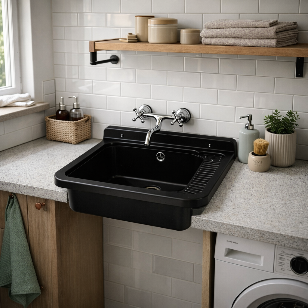 Komora gospodarcza komora przemysłowa zlewozmywak pralniczy czarna GRANO