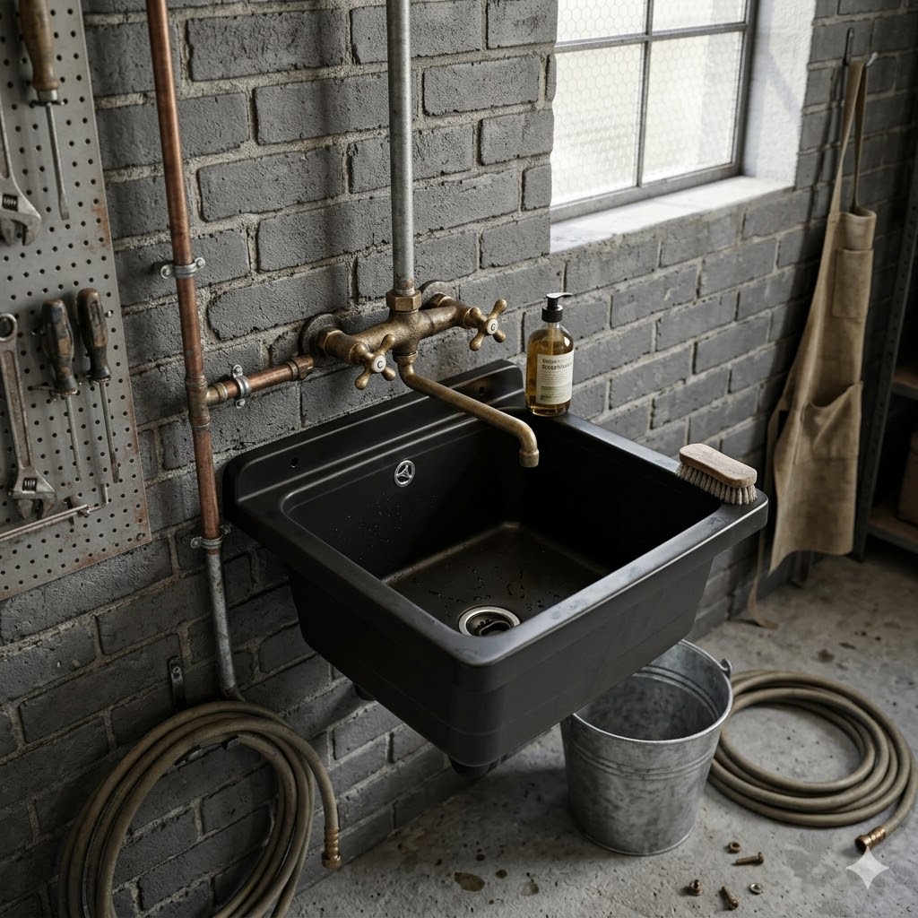 Zlew gospodarczy RITA to kompaktowe i praktyczne rozwiązanie przeznaczone do pomieszczeń technicznych oraz różnego rodzaju przestrzeni roboczych.