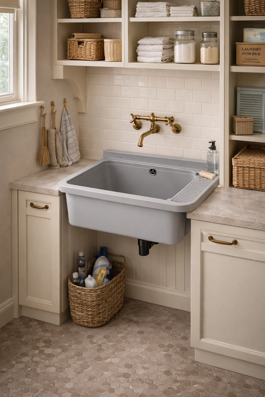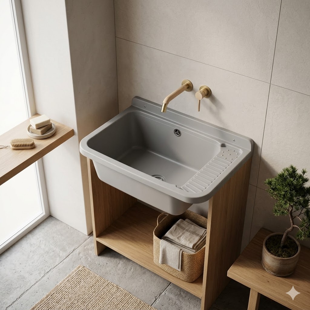 Zlew gospodarczy DIANA to praktyczne i estetyczne rozwiązanie przeznaczone do pomieszczeń technicznych oraz różnego rodzaju przestrzeni roboczych.