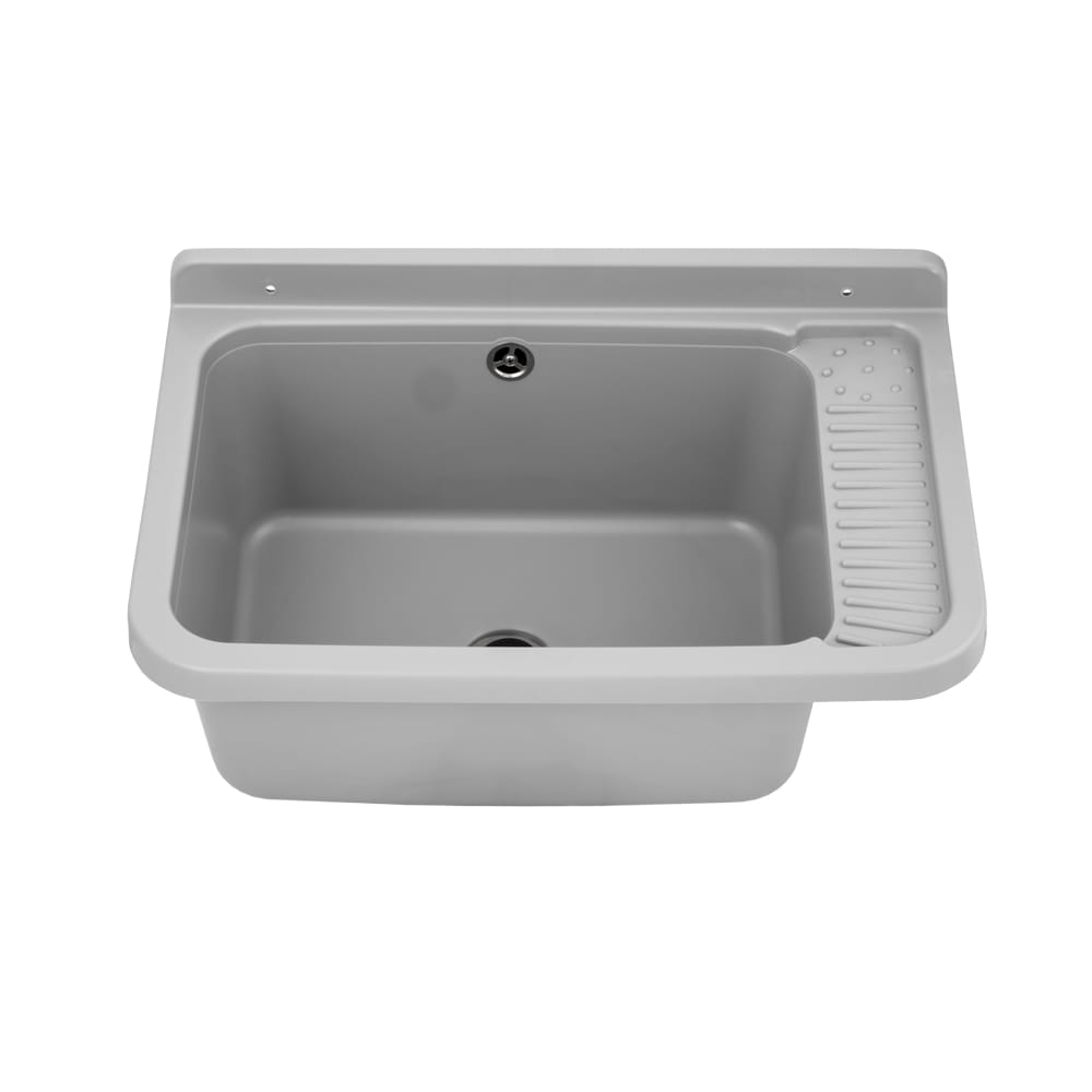 Dzięki szaremu wykończeniu produkt zyskuje bardziej domowy charakter i doskonale prezentuje się nie tylko w garażu czy warsztacie, lecz także w pralni oraz pomieszczeniu gospodarczym. Komora została wykonana z wysokiej jakości polipropylenu, który zapewnia odporność na detergenty, wilgoć oraz podwyższone temperatury. Pojemna komora oraz solidna konstrukcja gwarantują wygodę podczas codziennych prac porządkowych, takich jak pranie ręczne, mycie narzędzi czy czyszczenie akcesoriów domowych. Materiał cechuje się wysoką odpornością na uderzenia i środki chemiczne, co pozwala na długotrwałe użytkowanie nawet w wymagających warunkach. Zlew umożliwia montaż z baterią ścienną lub stojącą, dzięki czemu można go łatwo dopasować do istniejącej instalacji wodnej. W zestawie znajduje się syfon, co sprawia, że produkt jest kompletny i gotowy do szybkiego montażu. Gładka powierzchnia sprawia, że komora jest łatwa w utrzymaniu czystości, a jej estetyczny wygląd pozostaje zachowany przez długi czas.