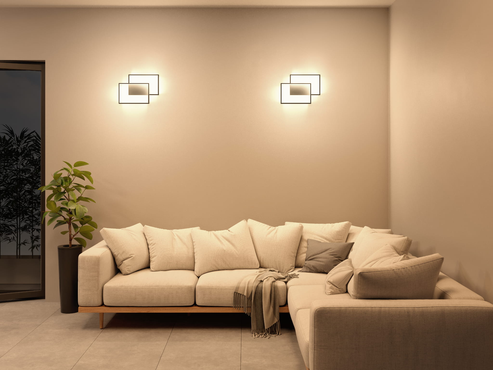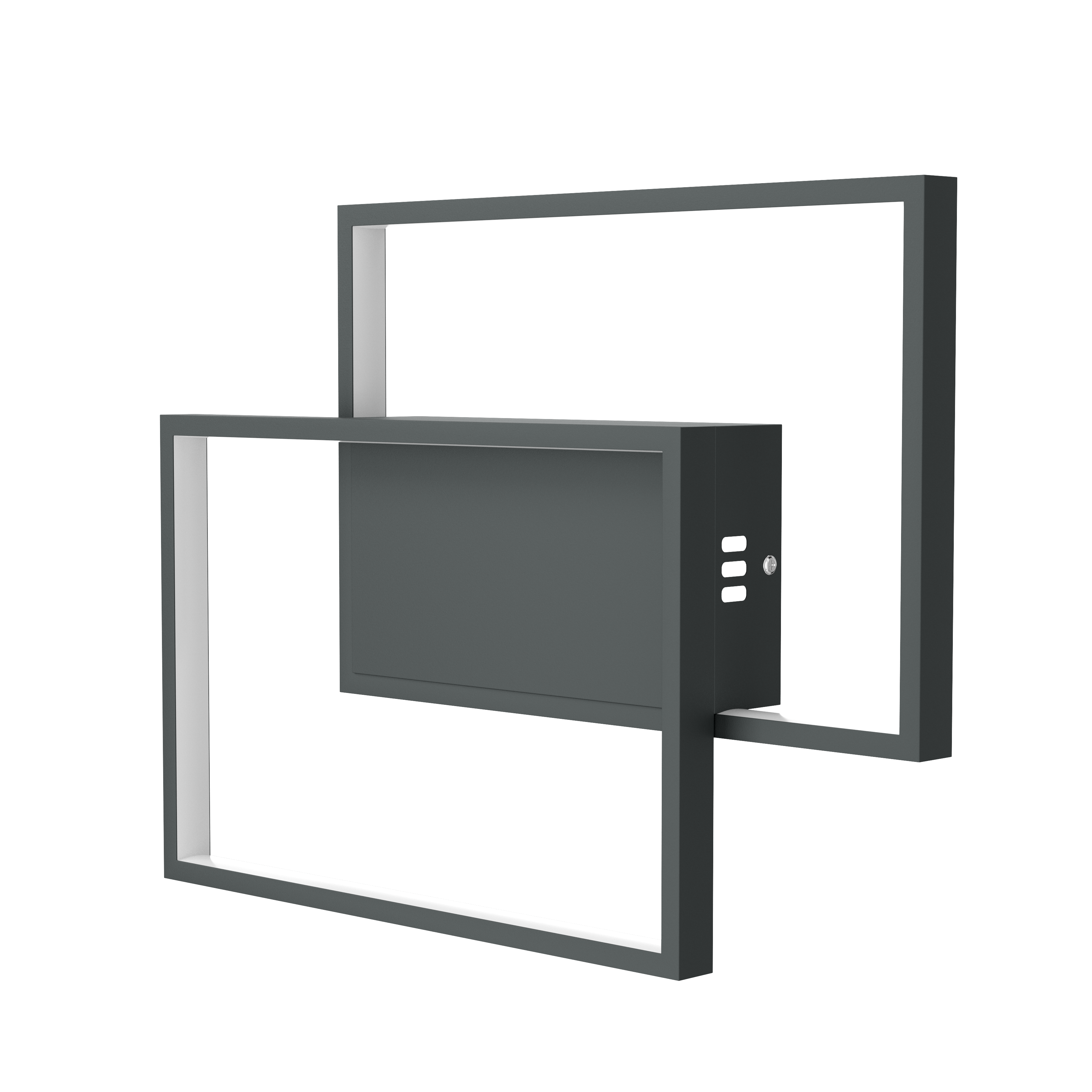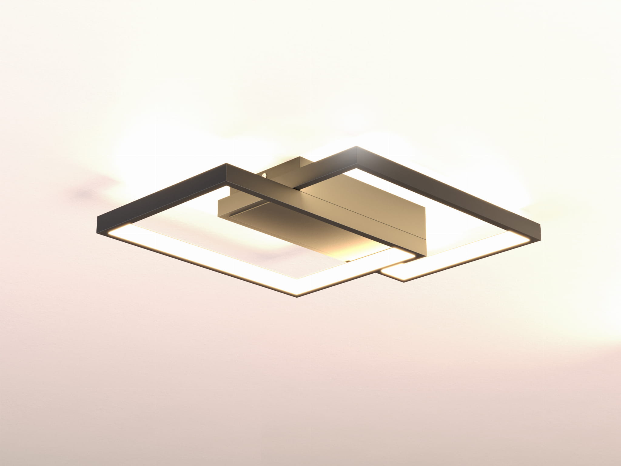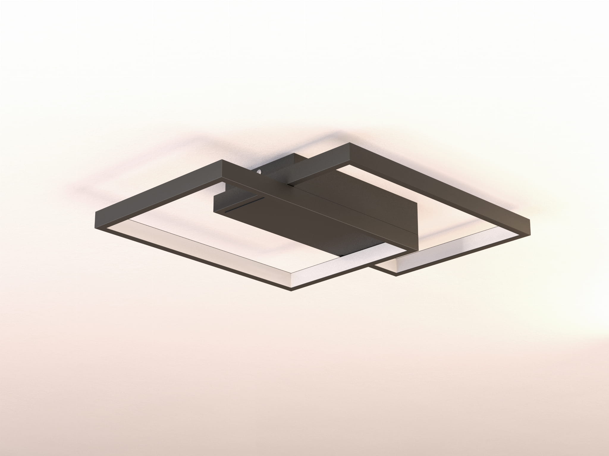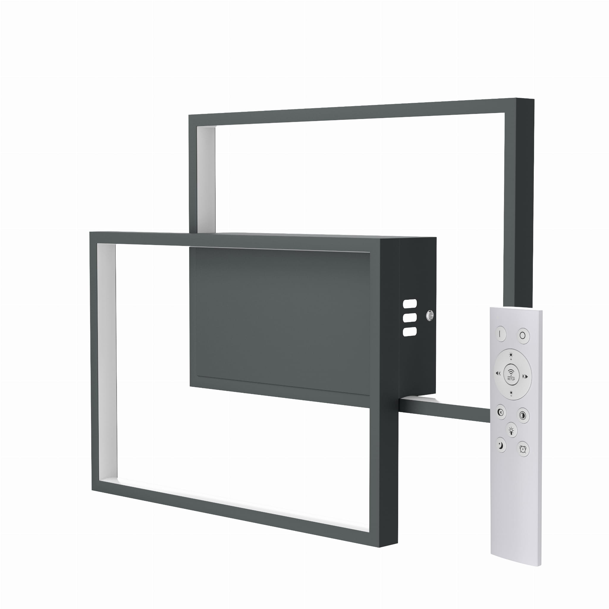 Nowoczesna lampa LED o geometrycznym kształcie, sterowana pilotem. Zintegrowane źródło światła. Regulacja stopnia natężenia światła. Maksymalna moc poboru 50W.