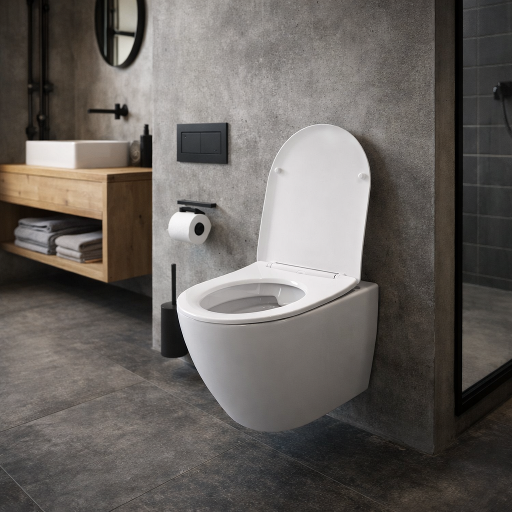 Wykonana z wysokiej jakości ceramiki sanitarnej w klasycznym białym kolorze, doskonale wpisuje się w nowoczesne oraz ponadczasowe aranżacje wnętrz. Podwieszana konstrukcja nadaje łazience lekkości i ułatwia utrzymanie czystości, umożliwiając wygodne sprzątanie pod miską WC. Zastosowana technologia bezkołnierzowa (rimless) eliminuje wewnętrzny rant, dzięki czemu ogranicza gromadzenie się zabrudzeń i bakterii oraz pozwala na dokładniejsze spłukiwanie całej powierzchni. Model wyposażony jest w deskę wolnoopadającą, która zapewnia ciche i bezpieczne zamykanie, zwiększając komfort codziennego użytkowania.