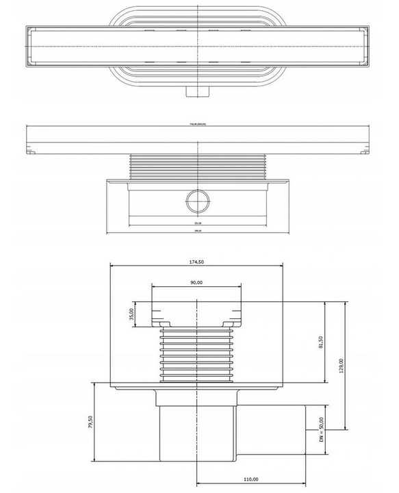 | Odpływ poziomy | Ø 50 |