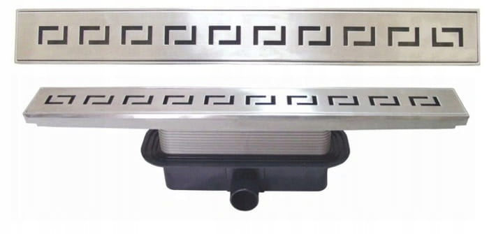 Funkcjonalny odpływ liniowy wzór grecki, o wymiarach 850 x 90 mm, seria Premium Line. Najwyższa jakość produktów firmy Velet Polska. Dwustronna maskownica (pełna lub pod płytkę). Przepustowość wody to aż 65 litrów na minutę. Maskownica wykonana ze stali nierdzewnej - wzór grecki. Ruszt ze stali nierdzewnej z kołnierzem. Odpływ o dużej przepustowości wody, uszczelki silikonowe. Hak do wyjmowania maskownicy. W zestawie również instrukcja montażu. Produkt posiada atest higieniczny PZH.