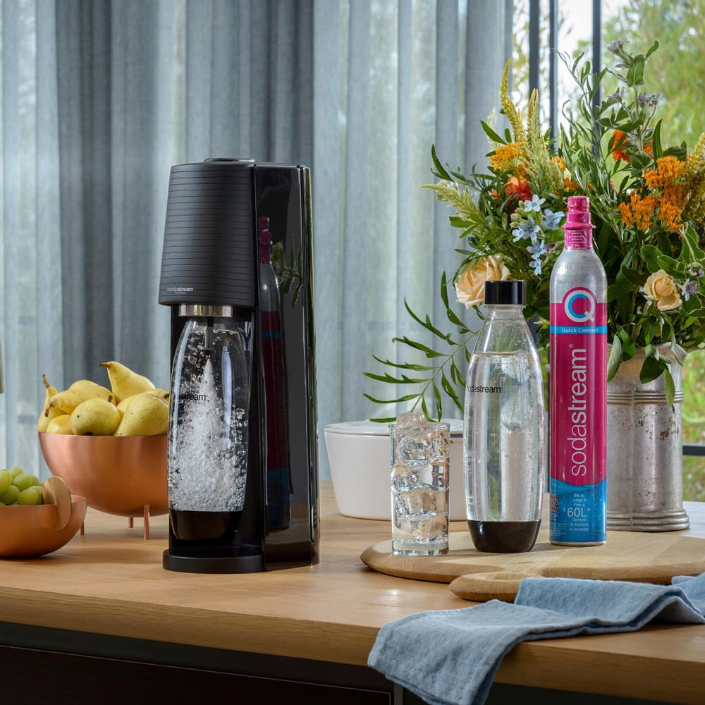 Dzięki SodaStream wyeliminujesz zużycie jednorazowych butelek i zmniejszysz ilość generowanego plastiku w domu. Wystarczy kilka sekund, jeden przycisk i Twoja woda zamieni się w bąbelkowy napój.