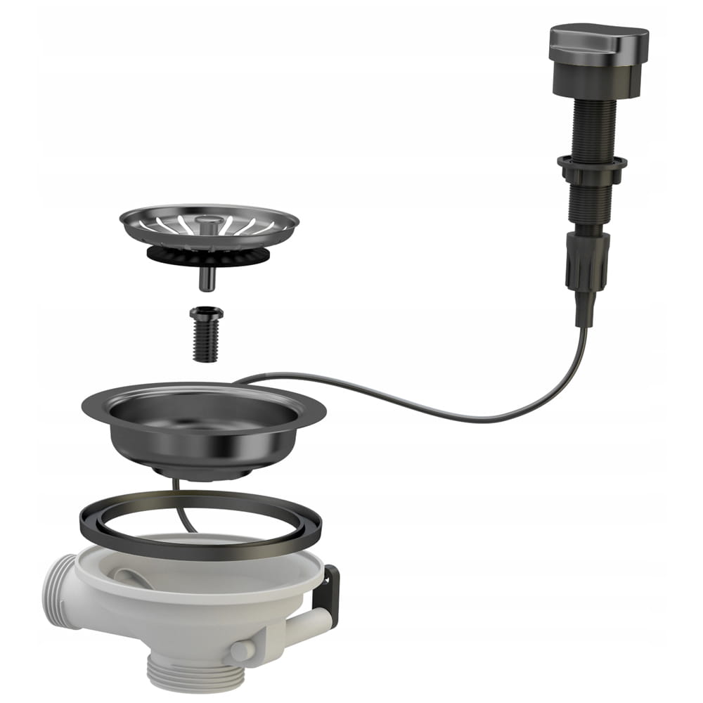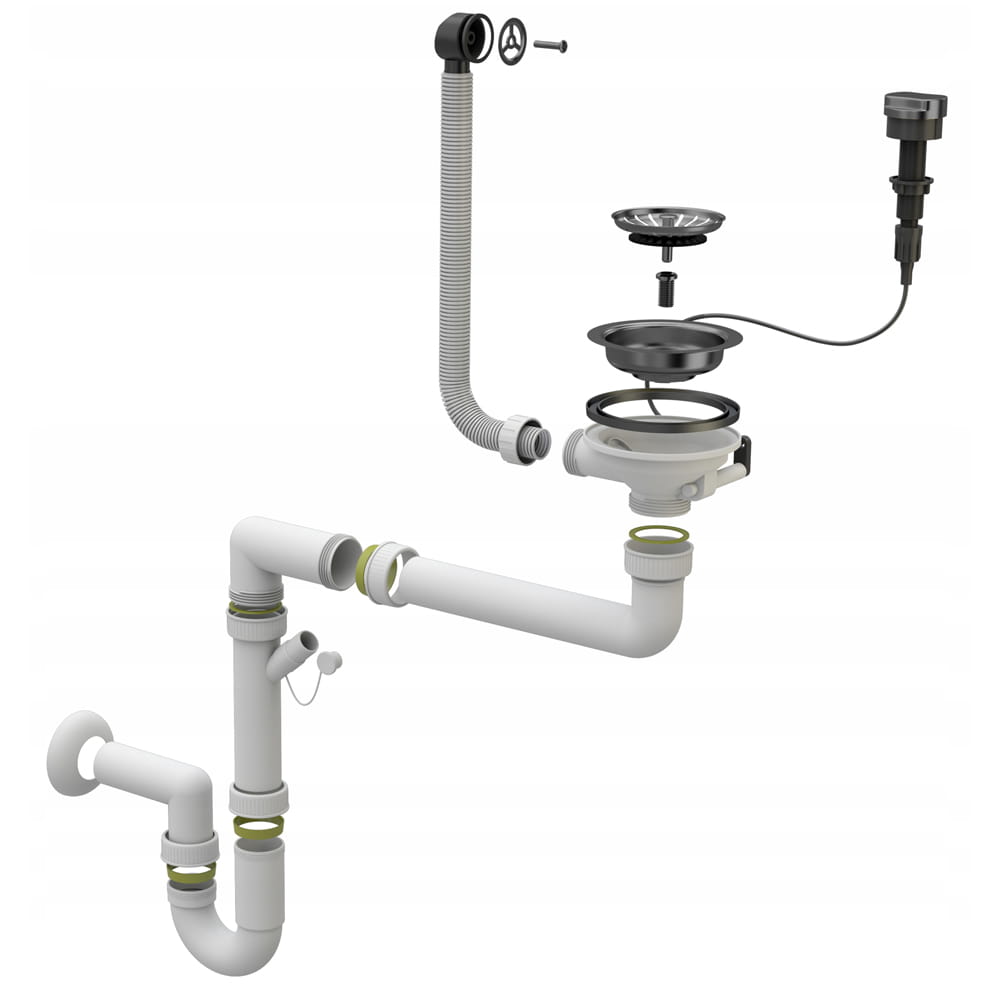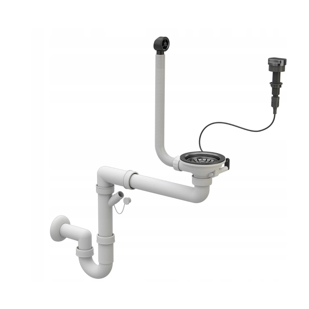 Syfon przyścienny automatyczny jednokomorowy w kolorze czarnym, pasujący do wszystkich naszych granitowych jednokomorowych zlewozmywaków. System oszczędzający przestrzeń. Możliwość podłączenia pralki lub zmywarki SITO 3,5'', odpływ 3 1/2. Posiada system antyprzelewowy. Umożliwia przepływ zanieczyszczeń oraz zatrzymuje nieprzyjemne zapachy. Model automatyczny, którego spust jest otwierany i zamykany za pomocą pokrętła lub dźwigni. Mechanizm znajduje się pod zlewem, a na powierzchni zostaje pokrętło, które steruje korkiem/sitkiem.