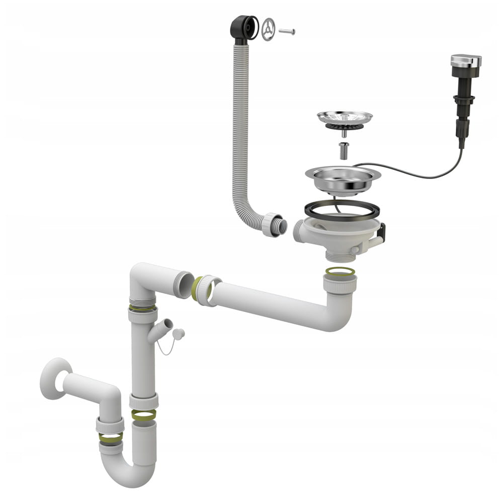Syfon przyścienny automatyczny jednokomorowy pasujący do wszystkich naszych granitowych jednokomorowych zlewozmywaków. System oszczędzający przestrzeń. Możliwość podłączenia pralki lub zmywarki SITO 3,5'', odpływ 3 1/2. Posiada system antyprzelewowy. Umożliwia przepływ zanieczyszczeń oraz zatrzymuje nieprzyjemne zapachy. Model automatyczny, którego spust jest otwierany i zamykany za pomocą pokrętła lub dźwigni. Mechanizm znajduje się pod zlewem, a na powierzchni zostaje pokrętło, które steruje korkiem/sitkiem.
