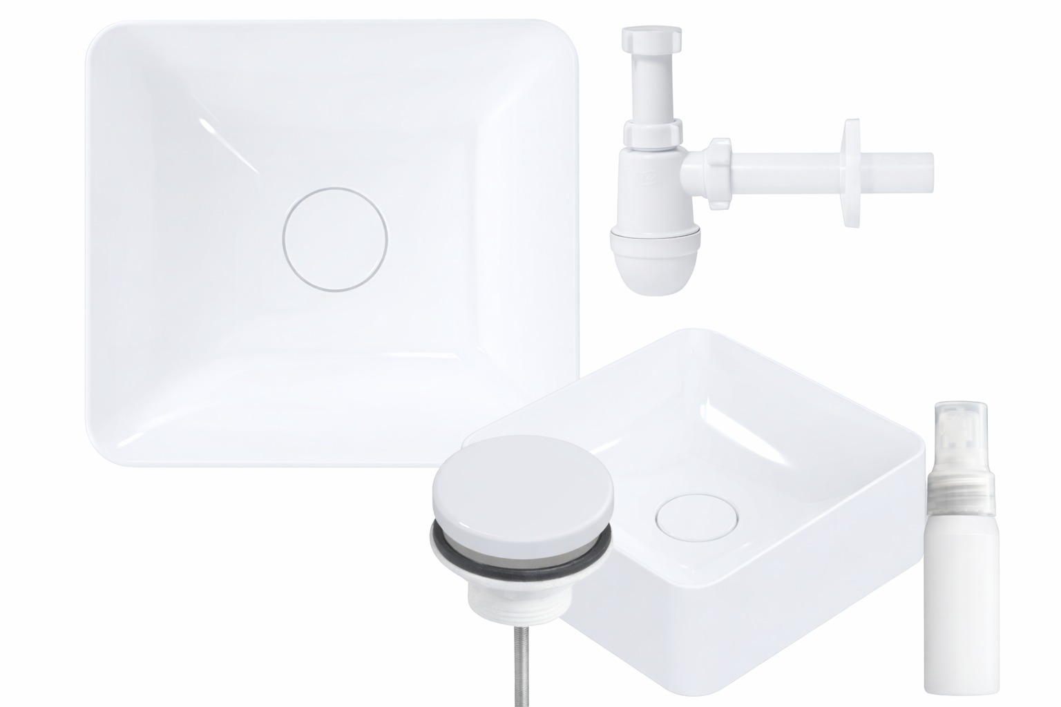Umywalka nablatowa HELA 40 to kompaktowe i nowoczesne rozwiązanie dla osób, które szukają eleganckiej umywalki z kompletnym zestawem akcesoriów, gotowej do montażu bez konieczności dokupowania dodatkowych elementów.