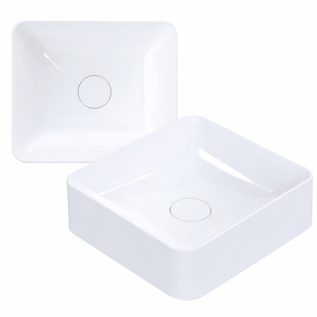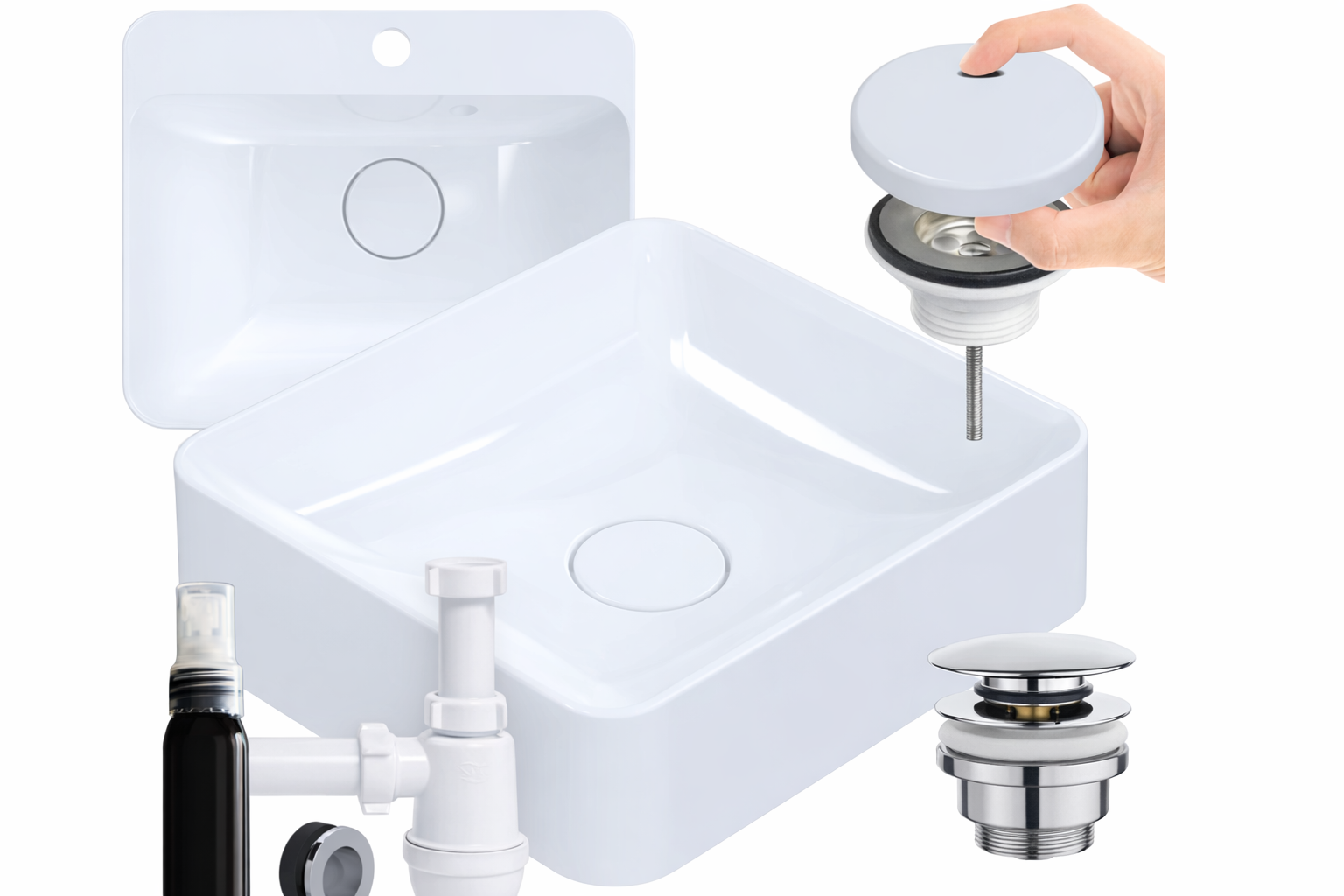 Umywalka biała łazienkowa 45 cm nablatowa konglomerat syfon maskownica LOUN