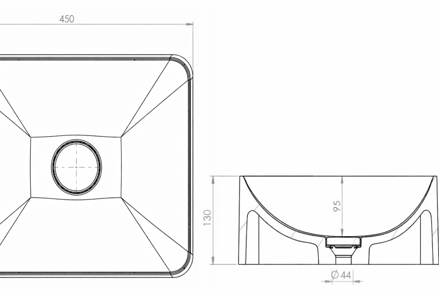 Umywalka nablatowa LOUN 45 to eleganckie i funkcjonalne rozwiązanie dla osób, które oczekują kompletnego zestawu i nowoczesnego designu w jednym, bez konieczności dobierania dodatkowych elementów osobno.