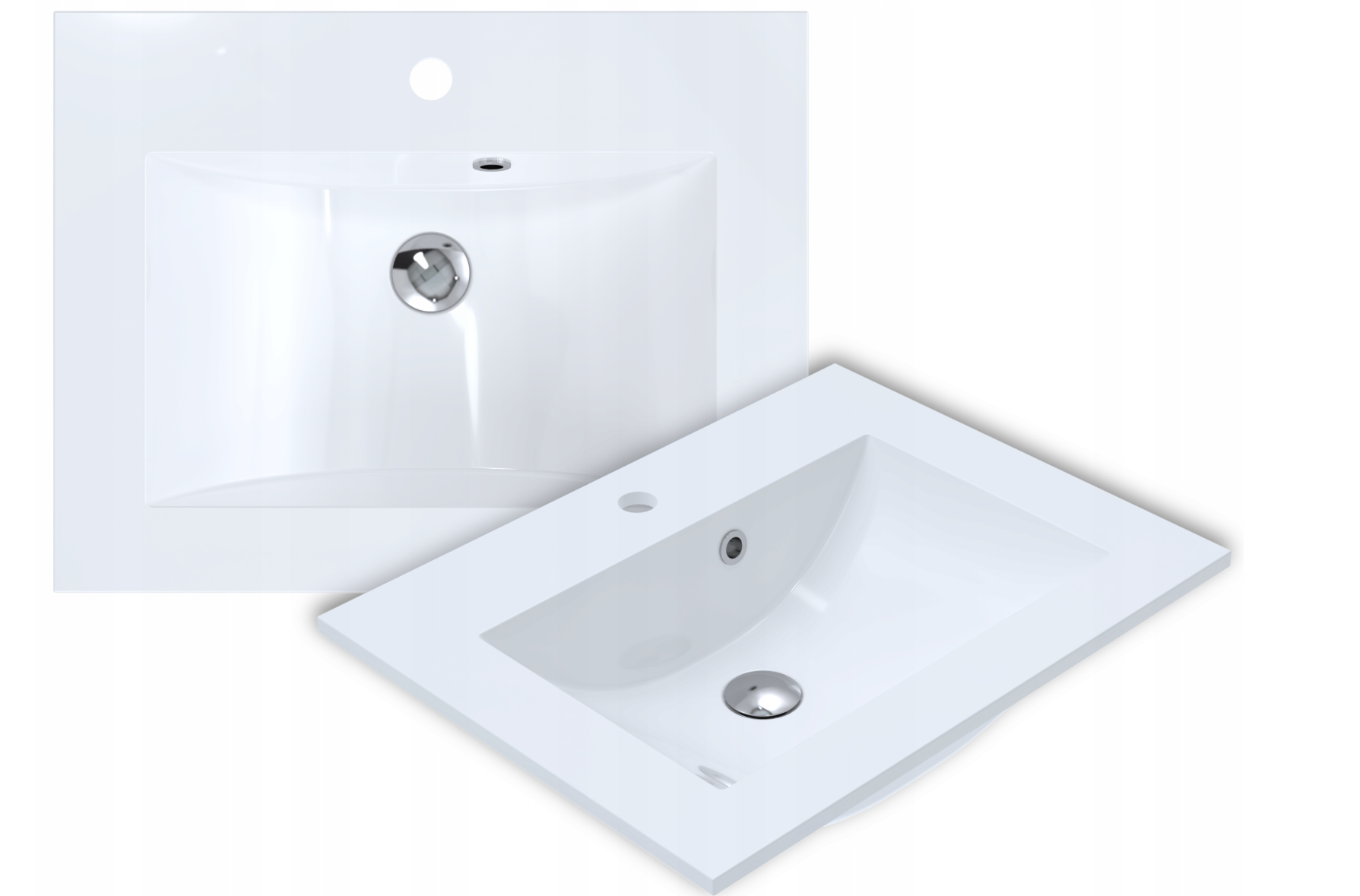 Umywalka biała łazienkowa 60 naszafkowa dolomit prostokątna + otwór LUXO
