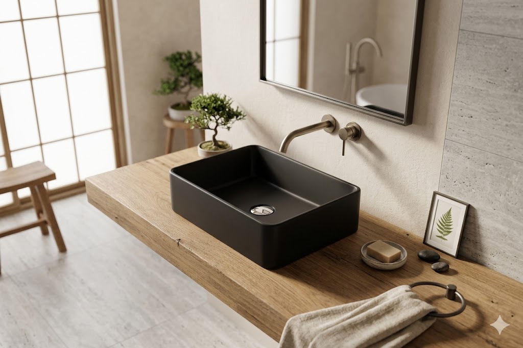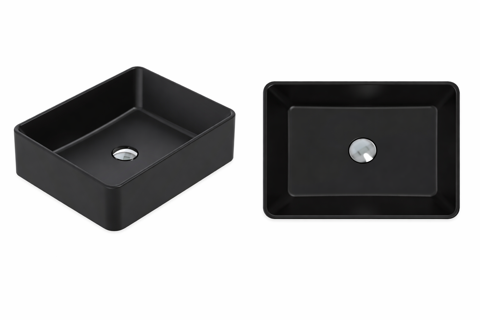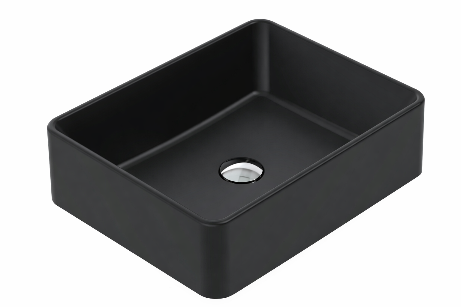 Umywalka nablatowa HUGO 50 to minimalistyczne i eleganckie rozwiązanie dla osób, które szukają nowoczesnej czarnej umywalki o luksusowym charakterze, łączącej design z codzienną funkcjonalnością.