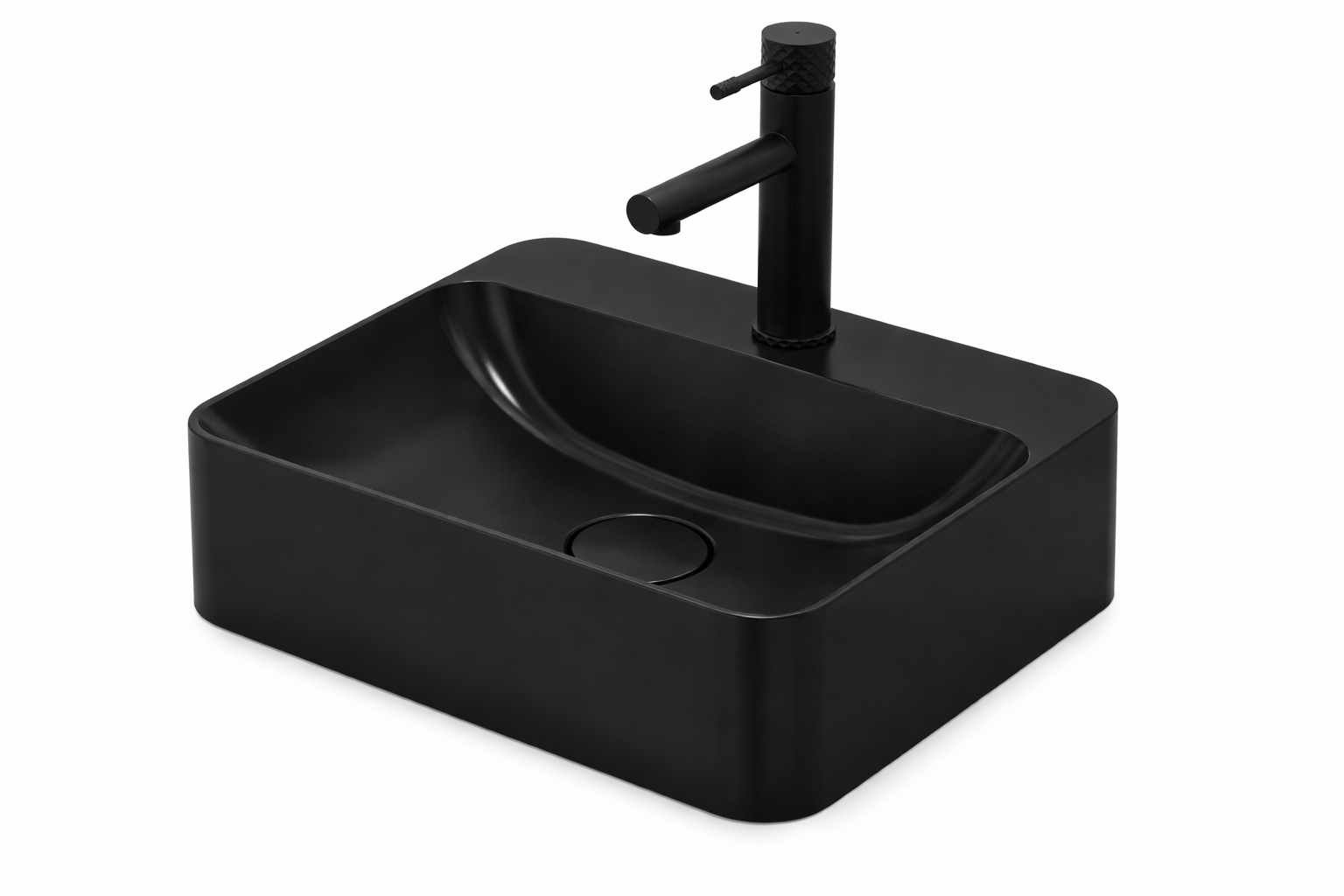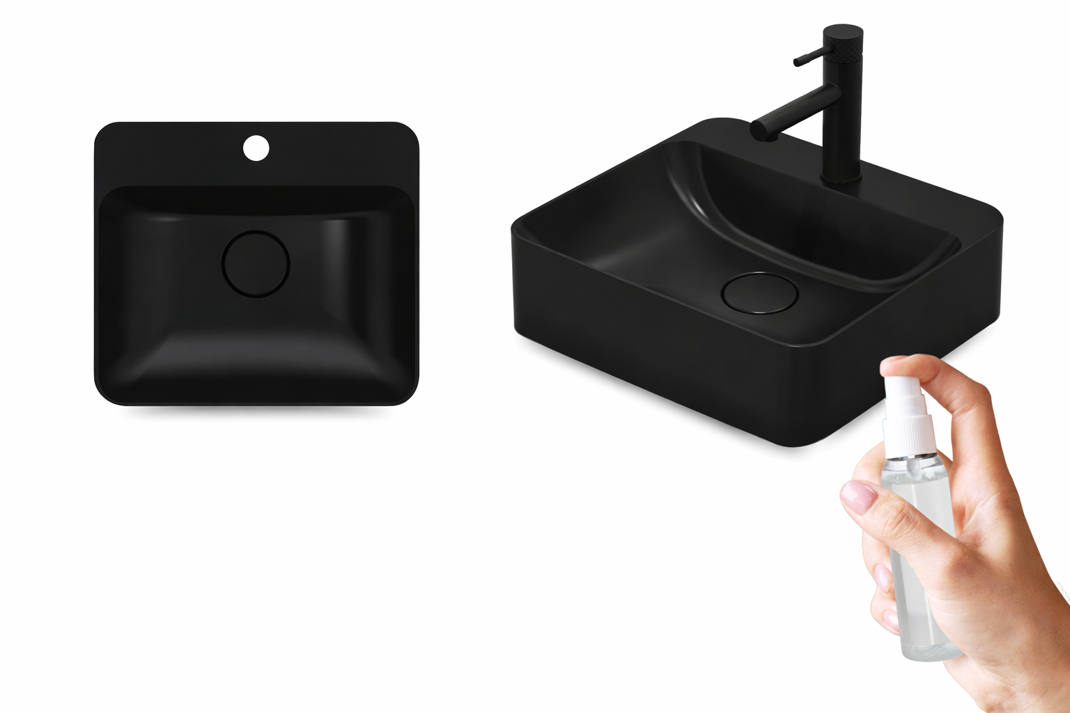 Umywalka czarna łazienkowa 45 nablatowa konglomerat przelew + impregnat FIO