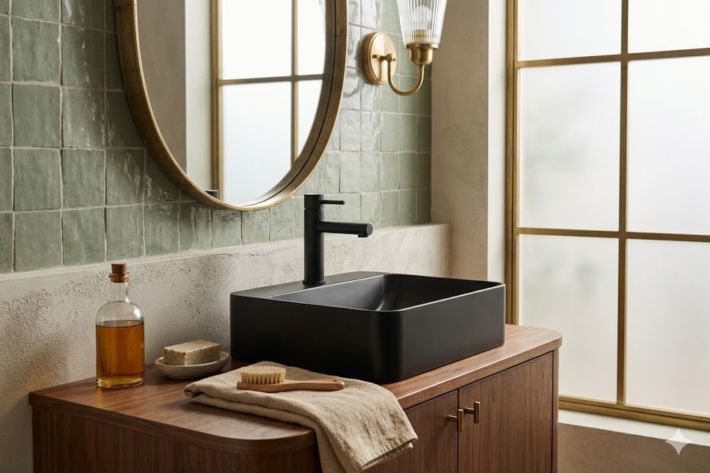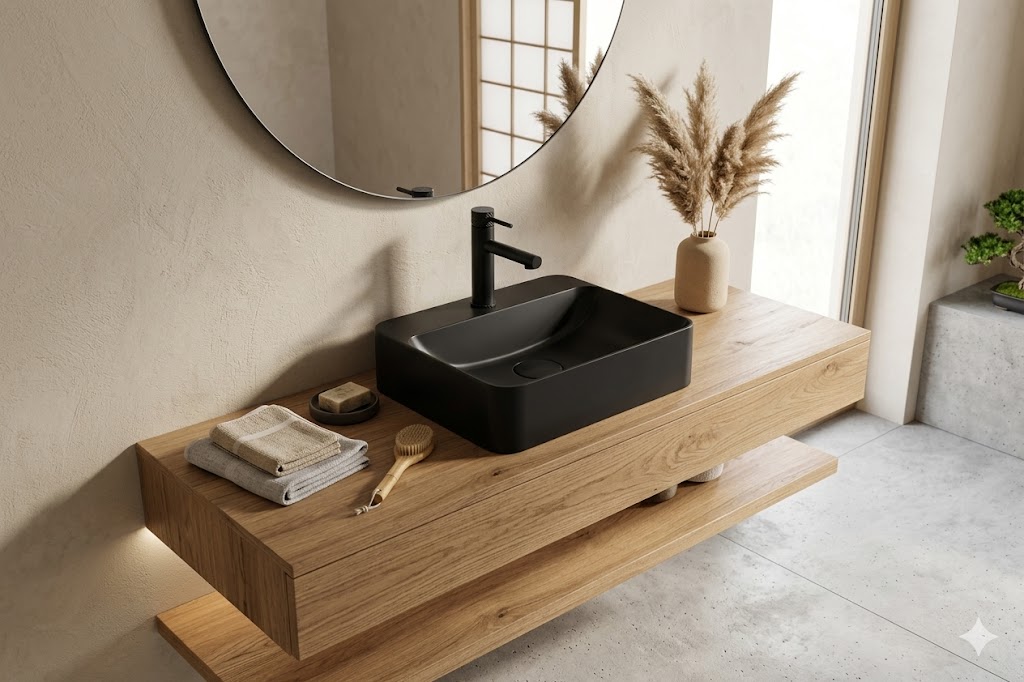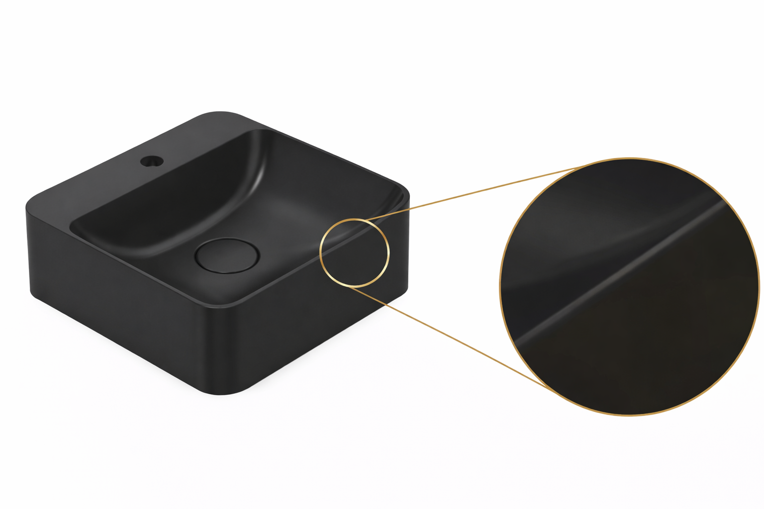 Model wykonany z wysokiej jakości konglomeratu granitowego wyróżnia się głęboką czernią oraz efektem premium (90 GU), który nadaje łazience luksusowy i nowoczesny charakter. Powierzchnia nie tylko prezentuje się wyjątkowo elegancko, ale również nie blaknie i zachowuje intensywność koloru przez lata, nawet przy codziennym użytkowaniu. Materiał skutecznie tłumi dźwięk wody, dzięki czemu korzystanie z umywalki jest komfortowe i niemal bezgłośne, co zwiększa wygodę użytkowania zarówno w dzień, jak i w nocy. Gładka, nieporowata powierzchnia zapobiega osadzaniu się kamienia i zabrudzeń, dzięki czemu czyszczenie jest szybkie i bezproblemowe, a umywalka zachowuje swój idealny wygląd bez wysiłku. W zestawie otrzymujesz kompletny zestaw 7w1, w skład którego wchodzą m.in. umywalka, syfon, maskownica oraz przelewka – wszystkie elementy w spójnym, czarnym kolorze, co zapewnia estetyczny i harmonijny wygląd całej instalacji. Dodatkowym atutem jest praktyczna półka przy kranie, która zwiększa funkcjonalność i pozwala wygodnie przechowywać mydło lub akcesoria łazienkowe. Prostokątna forma i cienkie ranty nadają całości nowoczesny i lekki wygląd, idealnie wpisujący się w minimalistyczne aranżacje, a stabilna konstrukcja zapewnia pewne osadzenie na blacie. Umywalka jest również odporna na działanie środków chemicznych oraz uszkodzenia, co gwarantuje jej trwałość na lata. W zestawie znajduje się także impregnat GRATIS, który chroni powierzchnię i przedłuża efekt „jak nowa”, ułatwiając codzienną pielęgnację.