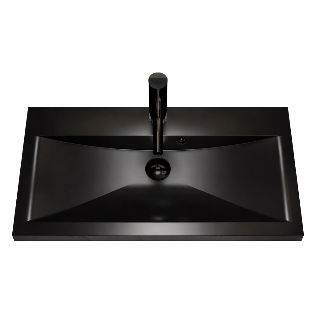 Umywalka czarna łazienkowa 80 cm nablatowa konglomerat z baterią 6w1 GALA