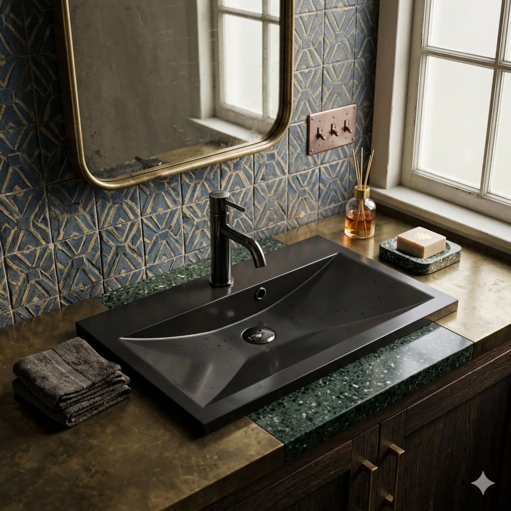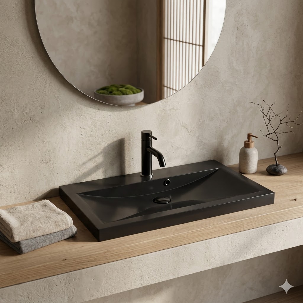 Model wykonany z wysokiej jakości konglomeratu granitowego wyróżnia się głęboką czernią w wykończeniu matowym (90 GU), która nadaje łazience luksusowy, nowoczesny charakter i zachowuje swoją intensywność przez lata bez ryzyka blaknięcia czy przebarwień. Dzięki zastosowanemu materiałowi umywalka skutecznie tłumi dźwięk wody, co sprawia, że korzystanie z niej jest ciche i komfortowe, a gładka, nieporowata powierzchnia ogranicza osadzanie się kamienia i zabrudzeń, dzięki czemu czyszczenie jest szybkie i bezproblemowe. W zestawie otrzymujesz kompletny zestaw 8w1, który obejmuje umywalkę, baterię z diamentowym pokrętłem, syfon, klik-klak oraz pozostałe elementy w spójnym czarnym kolorze, co zapewnia elegancki i harmonijny wygląd całej instalacji. Duży format 80 cm gwarantuje wysoki komfort użytkowania i sprawia, że model doskonale sprawdzi się w przestronnych łazienkach, oferując więcej miejsca i wygody na co dzień. Prostokątna forma i minimalistyczny design idealnie wpisują się w nowoczesne oraz loftowe aranżacje, a stabilna konstrukcja zapewnia pewne osadzenie na blacie. Produkt jest również odporny na działanie środków chemicznych oraz uszkodzenia, co gwarantuje jego trwałość nawet przy intensywnym użytkowaniu. W zestawie znajduje się także impregnat GRATIS, który chroni powierzchnię i wydłuża efekt „jak nowa”, ułatwiając codzienną pielęgnację. Syfon metalowy w kolorze czarnym oraz system klik-klak zapewniają wygodne i efektywne użytkowanie, a bateria z diamentowym wykończeniem podkreśla luksusowy charakter zestawu i zapewnia pewny chwyt.