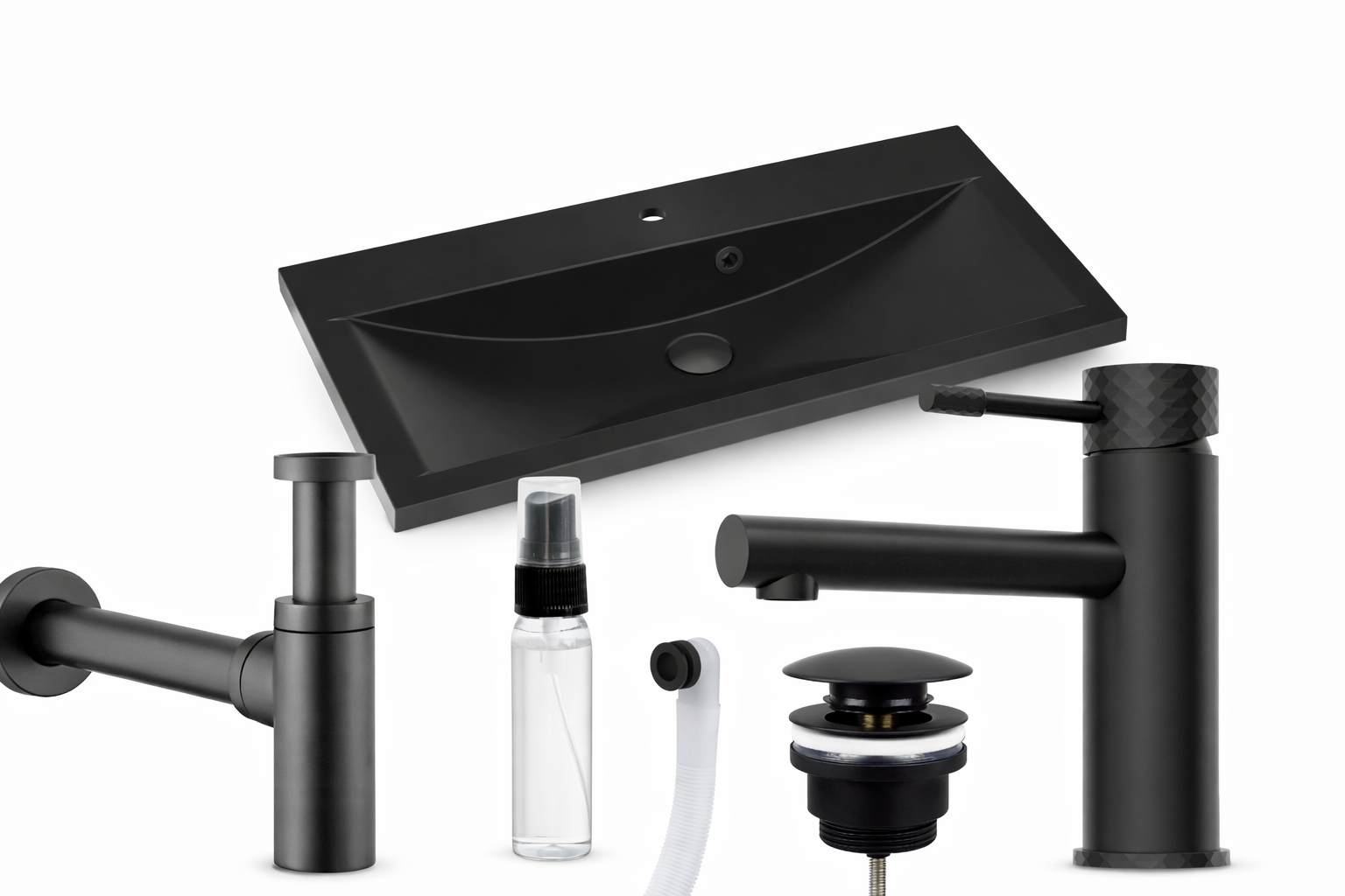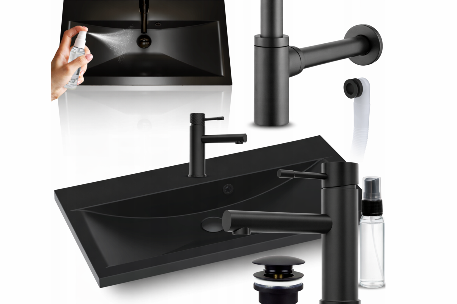 Umywalka nablatowa GALA 80 to kompletne i nowoczesne rozwiązanie dla osób, które szukają eleganckiej czarnej umywalki z pełnym zestawem akcesoriów, bez konieczności kompletowania elementów osobno.