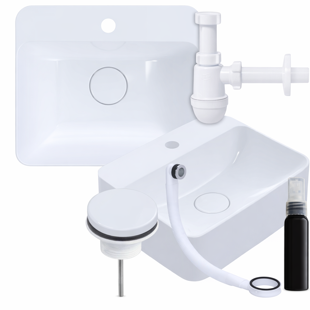 Model wykonany z wysokiej jakości konglomeratu dolomitowego zapewnia wyjątkową trwałość, odporność na uszkodzenia oraz stabilność, a jego śnieżnobiały połysk na poziomie 90 GU nadaje powierzchni intensywny, elegancki wygląd, który przewyższa standardowe umywalki ceramiczne i nie żółknie z upływem czasu. Materiał skutecznie tłumi dźwięk wody, dzięki czemu użytkowanie jest komfortowe i niemal bezgłośne, a dodatkowo jest odporny na działanie środków chemicznych oraz farb do włosów, co eliminuje ryzyko trwałych przebarwień i pozwala na bezproblemowe, codzienne użytkowanie. Idealnie gładka, nieporowata powierzchnia zapobiega osadzaniu się kamienia i zabrudzeń, co sprawia, że czyszczenie jest szybkie i bezwysiłkowe, a umywalka przez długi czas zachowuje swój nieskazitelny wygląd. Zestaw wyróżnia się spójnym kolorystycznie wykończeniem, gdzie syfon i maskownica dopasowane są do koloru umywalki, co tworzy estetyczną i harmonijną całość. Kompaktowy rozmiar 45 cm sprawia, że model idealnie sprawdzi się w mniejszych łazienkach oraz toaletach, oferując pełną funkcjonalność przy ograniczonej przestrzeni, a montaż nablatowy pozwala na nowoczesną i estetyczną aranżację wnętrza. Dodatkowym atutem jest impregnat GRATIS, który chroni powierzchnię i wydłuża efekt „jak nowa”, a także ciepły w dotyku materiał, który szybko przyjmuje temperaturę otoczenia, zwiększając komfort codziennego użytkowania. Całość dostarczana jest w bezpiecznym opakowaniu, minimalizującym ryzyko uszkodzeń podczas transportu.