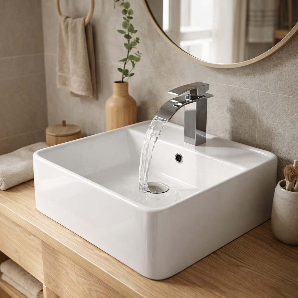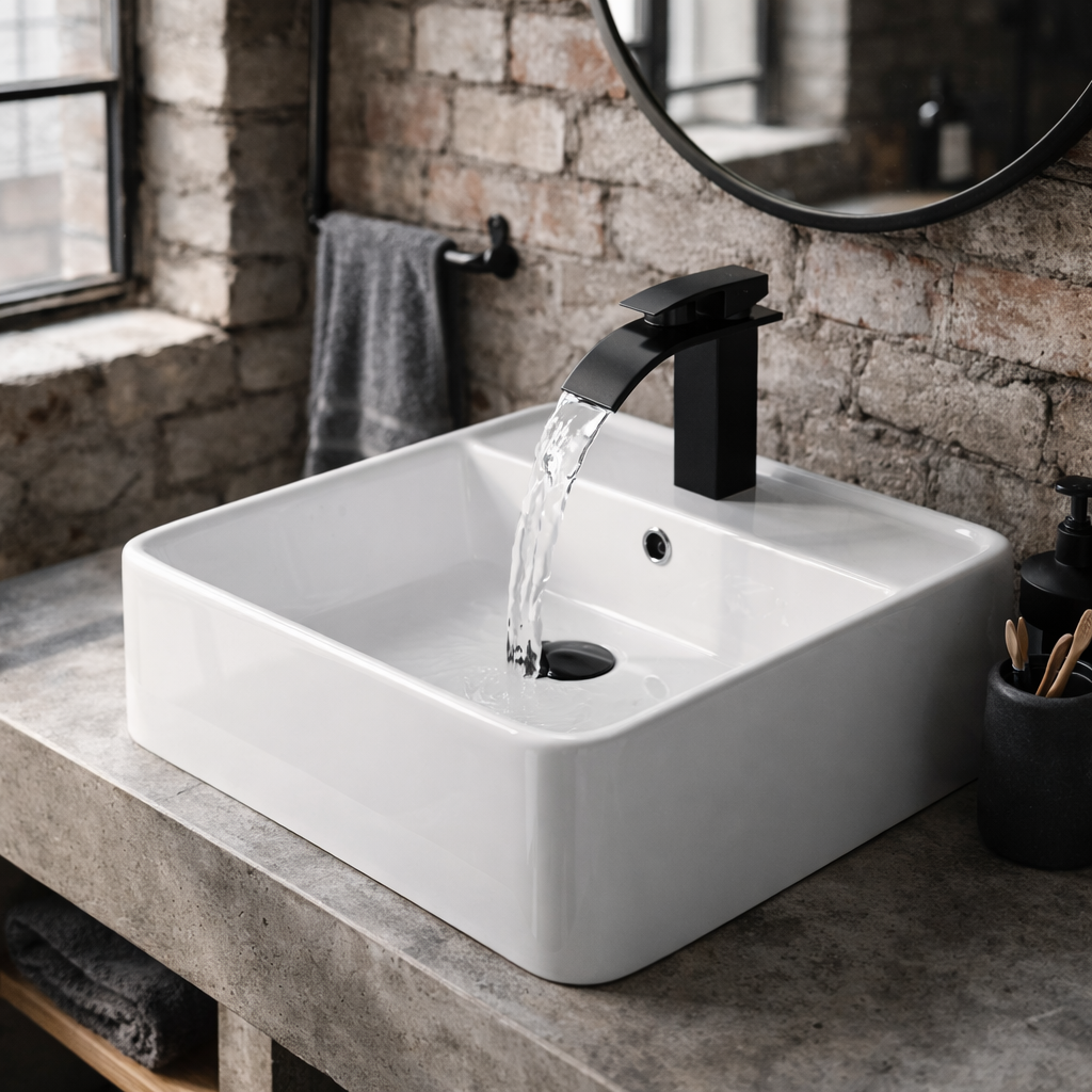 Model w klasycznym białym kolorze wyróżnia się geometrycznym kształtem nadającym wnętrzu uporządkowany charakter, przy jednoczesnym zachowaniu pełnej funkcjonalności. Kompaktowy, wygodny rozmiar zapewnia komfort codziennego użytkowania i sprawia, że umywalka idealnie nadaje się do małych oraz średnich łazienek. Montaż nablatowy pozwala wyeksponować bryłę produktu i stworzyć estetyczną, nowoczesną strefę umywalkową. Umywalka została wykonana z wysokiej jakości ceramiki, która gwarantuje trwałość, odporność na zarysowania oraz intensywne użytkowanie. Gładka powierzchnia ceramiczna ułatwia czyszczenie i pozwala zachować estetyczny wygląd przez długi czas. Minimalistyczny design sprawia, że model RAMOS harmonijnie współgra z różnymi stylami wnętrz – od nowoczesnych po klasyczne.